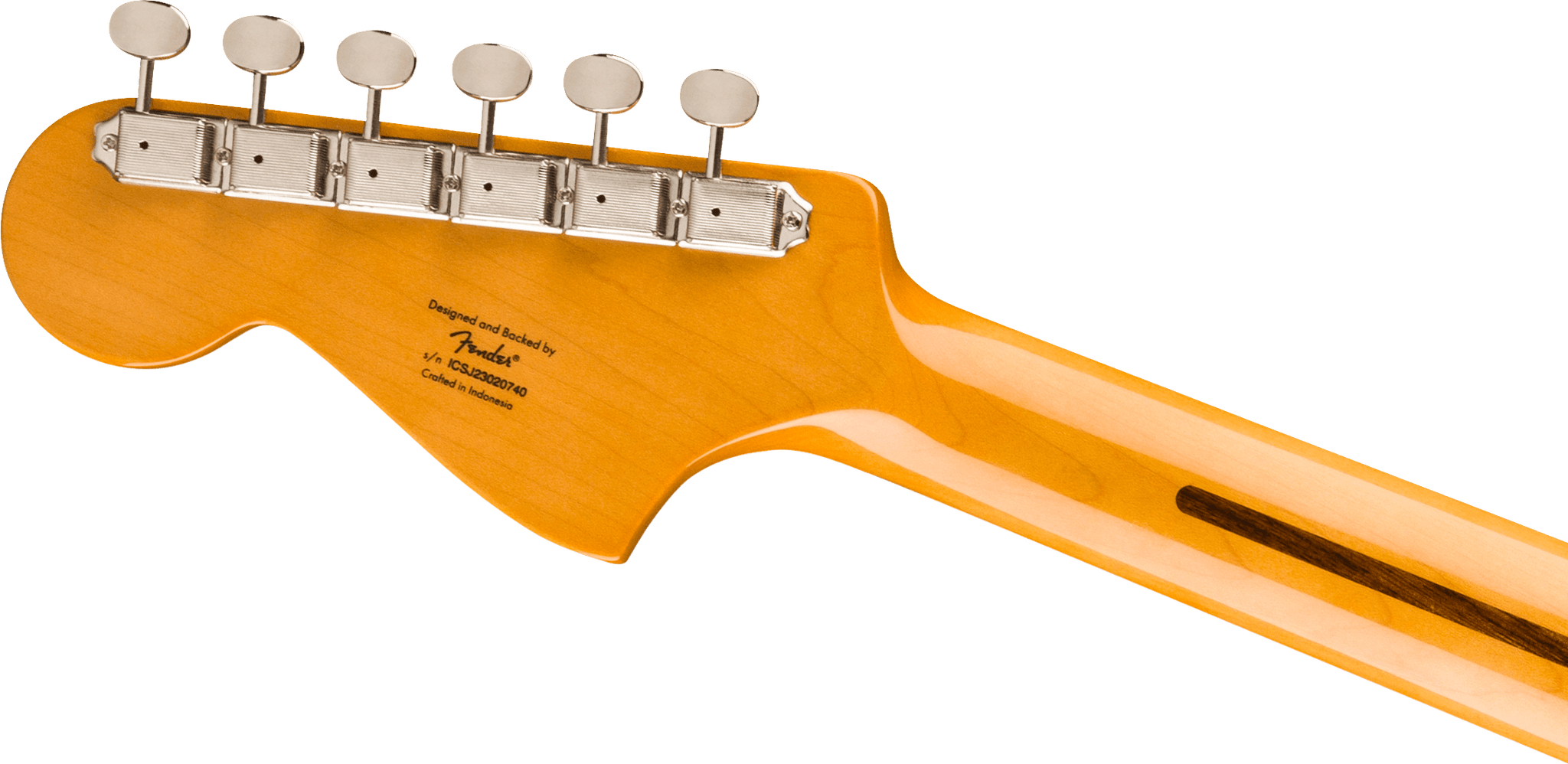 Tuned an octave lower than a guitar and featuring a vintage-style tremolo, its player-friendly features include a slim, comfortable "C"-shaped neck profile with an easy-playing 9.5"-radius fingerboard and narrow-tall frets, as well as a floating bridge with barrel saddles for solid string stability. This throwback Squier model also features 1960s-inspired headstock markings, rich-looking nickel-plated hardware and a slick vintage-tint gloss neck finish for an old-school vibe.