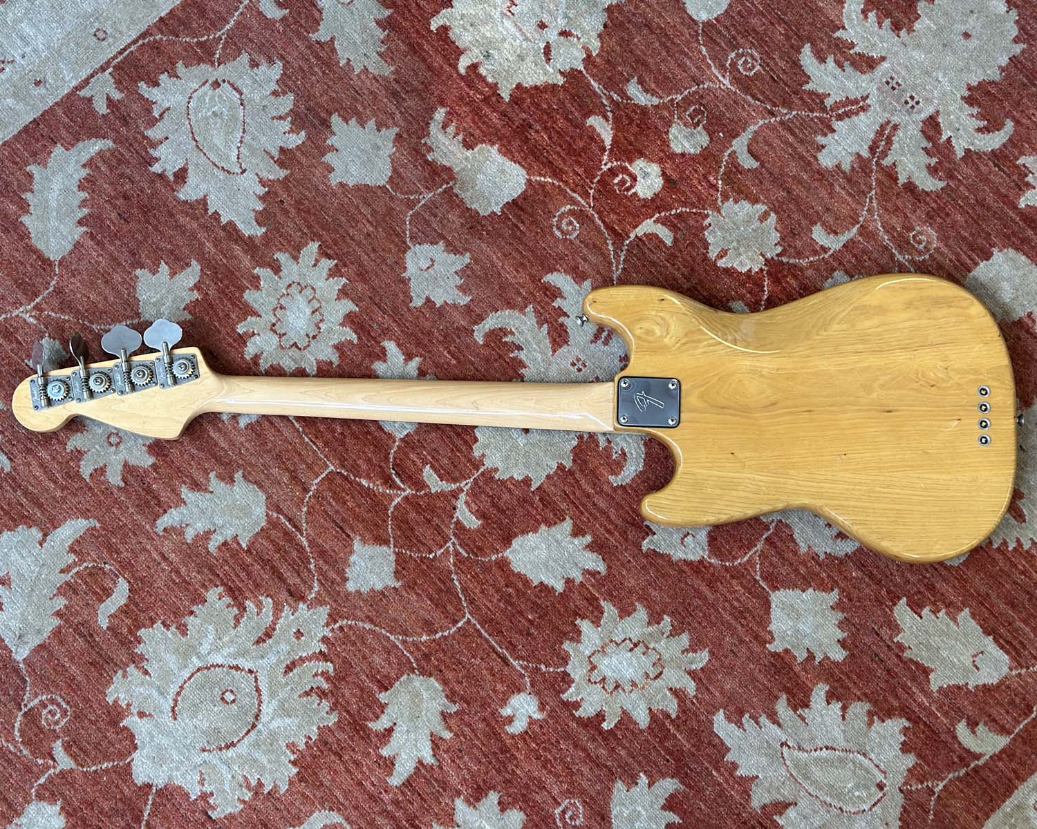 Stunning vintage Fender Mustang bass, short scale beauty with natural gloss finish and split single coil pickup. A solid chug machine with a great chunky neck. Featuring an ash body, maple neck with rosewood fretboard with a 9.5" radius and a 30" scale length. The classic Mustang split coil pickup is controlled by a volume and tone pot affixed to a chrome plate.