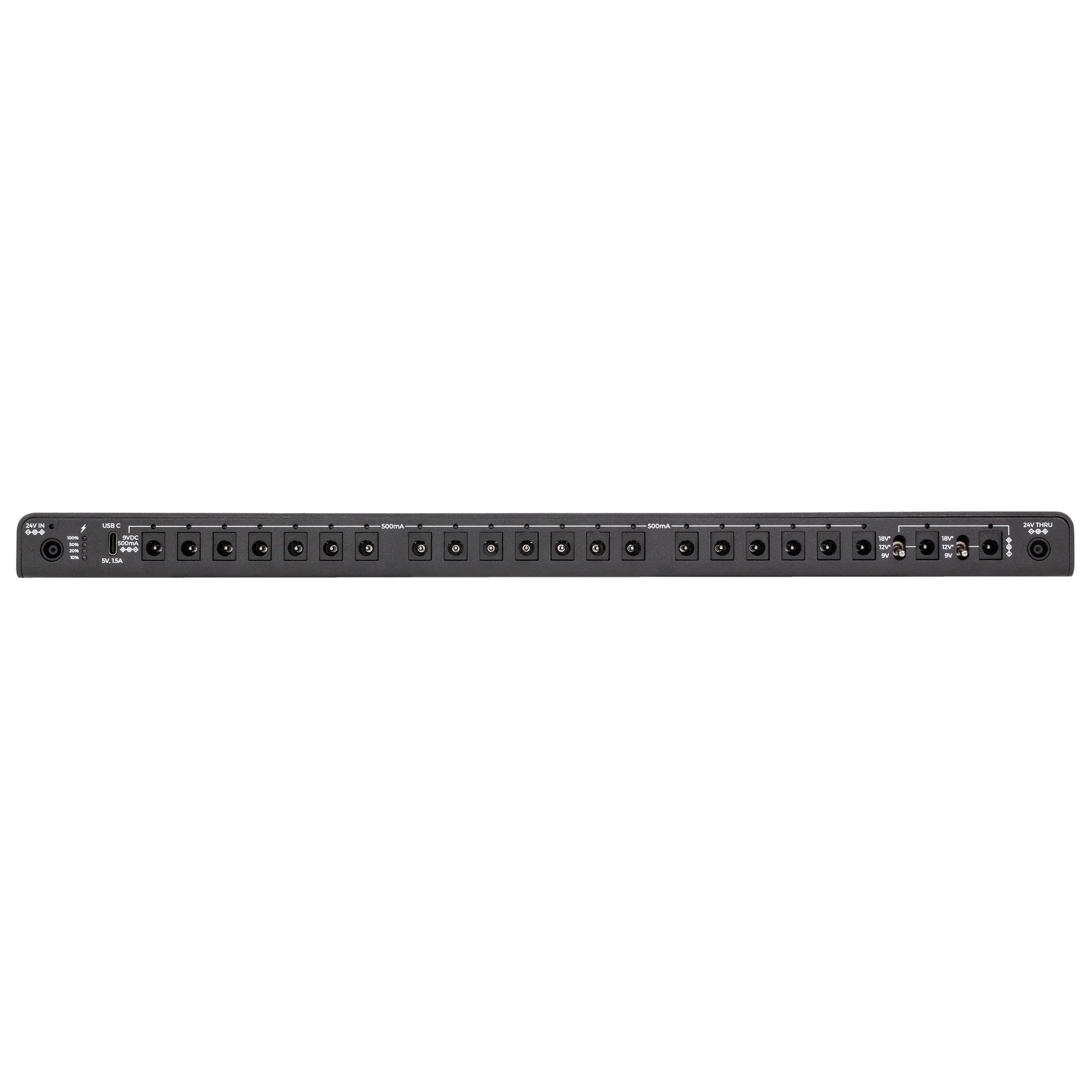 Introducing the Canvas Power 22, your pedalboard's new best friend! Imagine having 22 isolated power outputs, each delivering up to 500mA of clean, reliable 9V power. Your pedals will thank you! And for those high-voltage beasts, two of the outlets offer variable voltage, so you can easily switch between 9V, 12V, and 18V. But wait, there’s more! It even includes a USB-C port to keep your phone or tablet charged while you rock out. Don’t settle for less—power your gear like a pro with the Canvas Power 22 and experience unparalleled performance and convenience!
