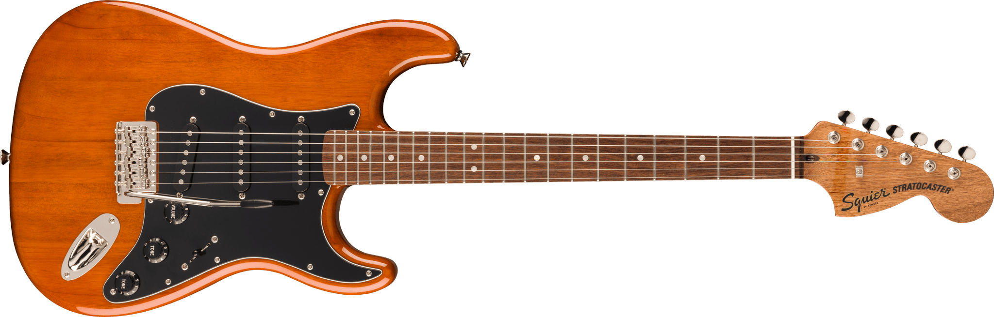 Player-friendly features include a slim, comfortable "C"-shaped neck profile with an easy-playing 9.5"-radius fingerboard and narrow-tall frets, as well as a vintage-style tremolo system for expressive string bending effects. This Squier model also features 1970s-inspired headstock markings, rich-looking nickel-plated hardware and a slick vintage-tint gloss neck finish for an old-school vibe.
