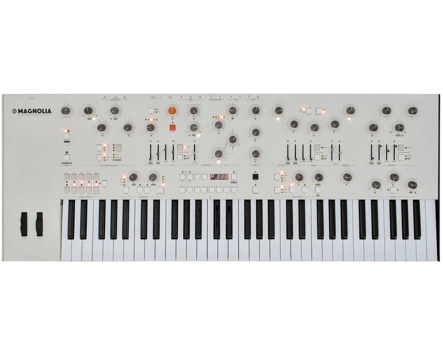 Each voice features dual oscillators, combining traditional subtractive tones with wavefolding and linear FM, supported by resonant high-pass and low-pass filters and analogue saturation. A five-octave Fatar keyboard with polyphonic aftertouch makes Magnolia highly expressive, while bi-timbral operation, sequencing, arpeggiation, and an extensive modulation system encourage deep sound design without sacrificing hands-on control.
