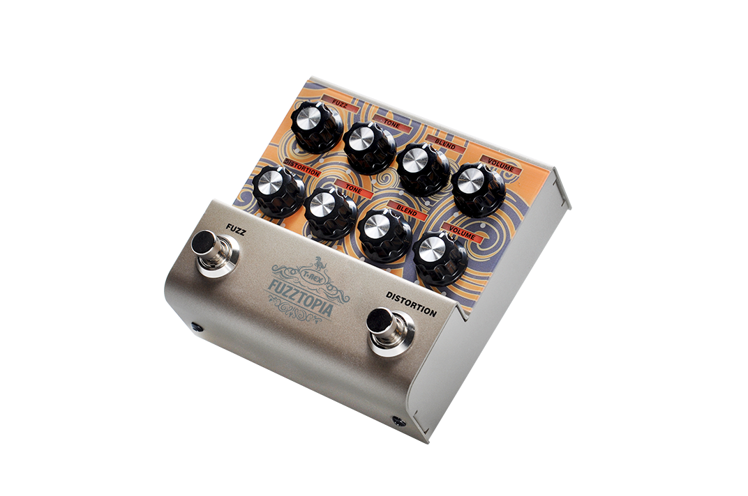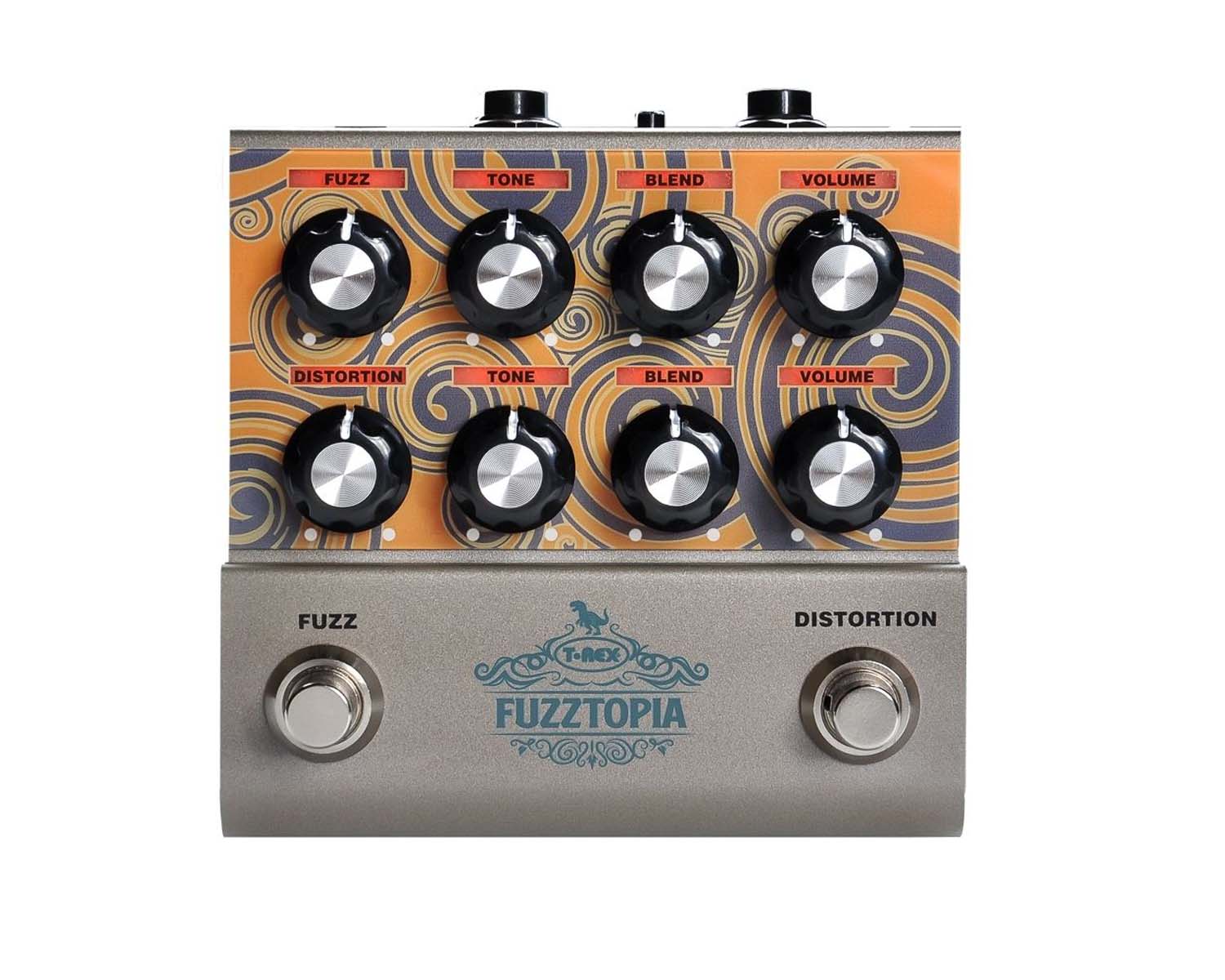 "T-Rex FuzzTopia is a hybrid fuzz and distortion pedal that blends classic germanium-style fuzz with warm, clear distortion. Designed to push beyond straight vintage recreation, it can move from aggressive, stormy fuzz to smooth, controlled drive without losing character.