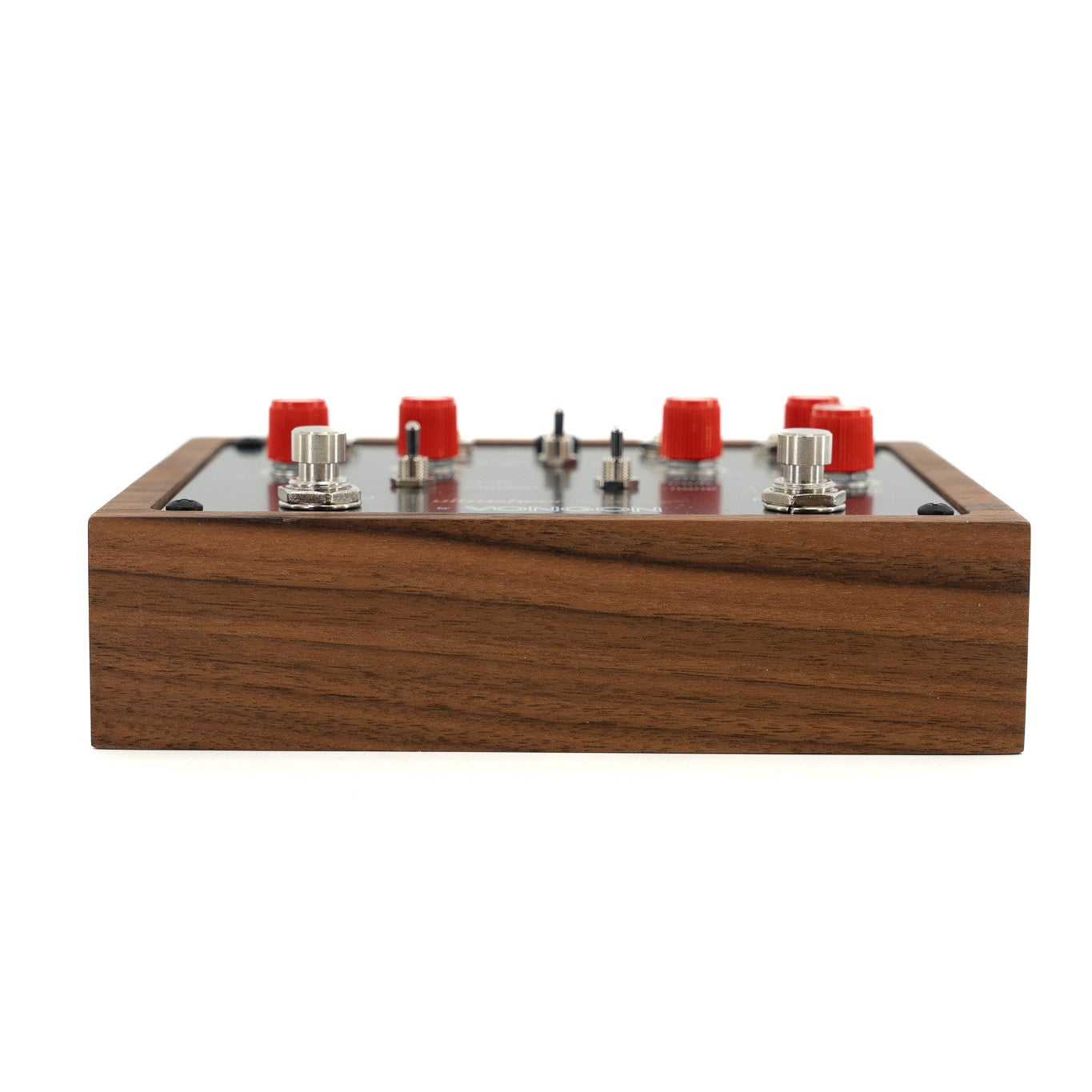 The vibrato is a smooth and transparent digital pitch shifter that preserves the full bandwidth of your input signal and does not darken the sound which is often found in the analog counterparts. Two modulation waveforms are available, “cycle” which is a sine wave for classic Leslie-speaker-type sounds and “random” which is a smoothed sample and hold waveform that creates pitch warbles similar to a warped vinyl or sun-baked cassette.