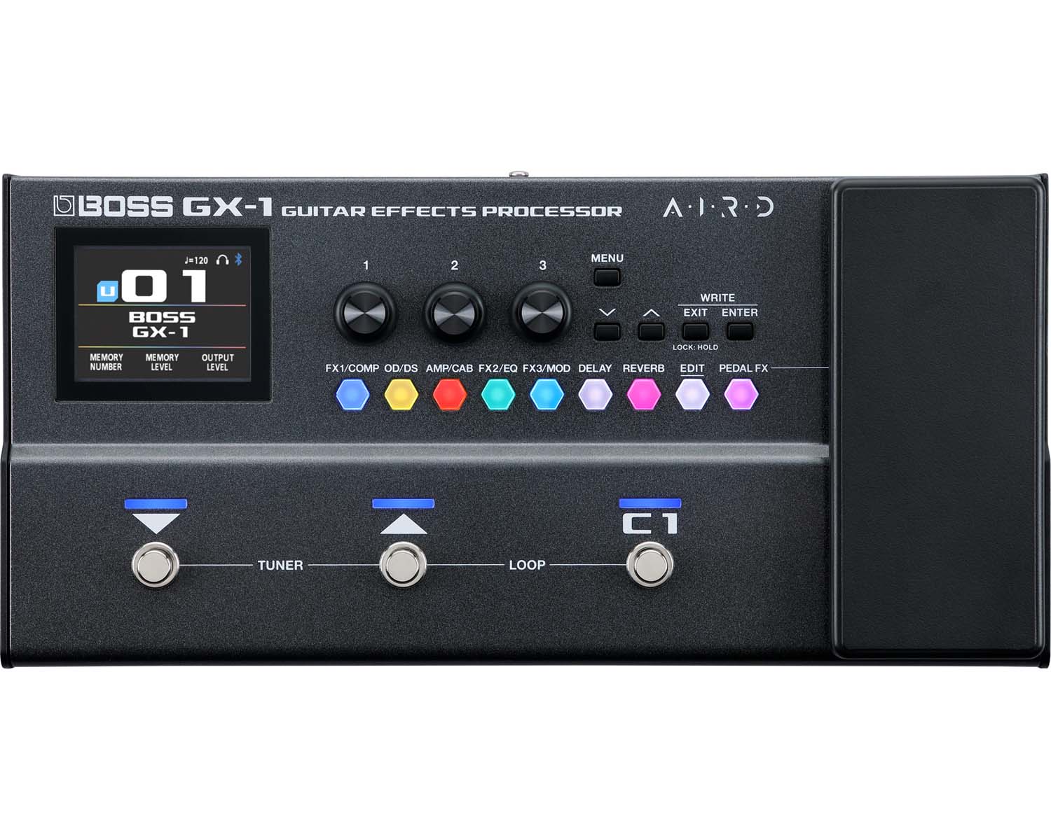 The GX-1 is an ultra-portable guitar amp and effects processor designed to cover practice, recording, and performance in a single compact unit. Drawing on the same AIRD amp technology found in BOSS’s larger GX models, it delivers authentic tube-style feel alongside a deep library of amps and effects. A full-colour display, clearly laid-out effect buttons, and the new Gear Suite system make it quick and intuitive to build and tweak sounds without getting lost in menus.