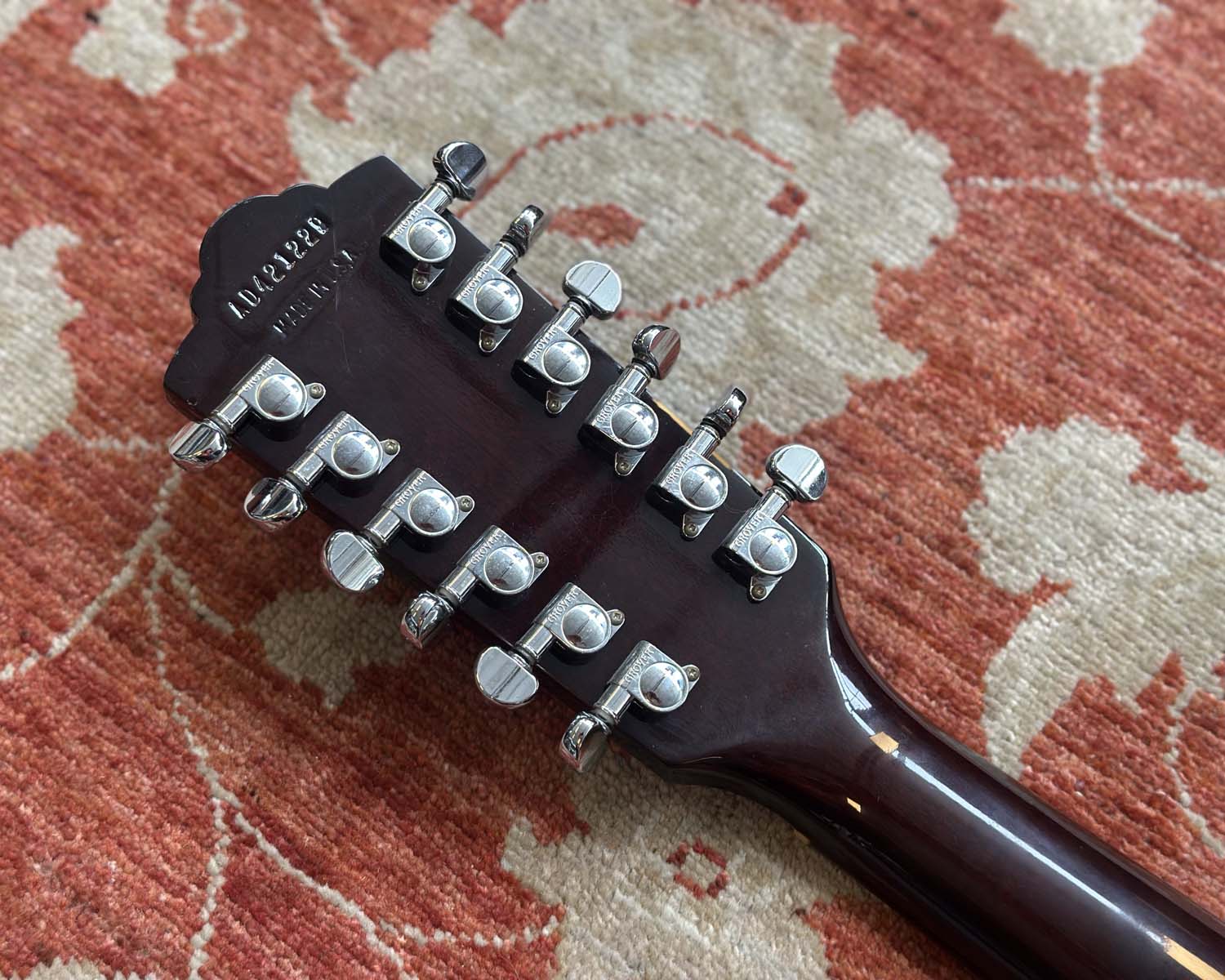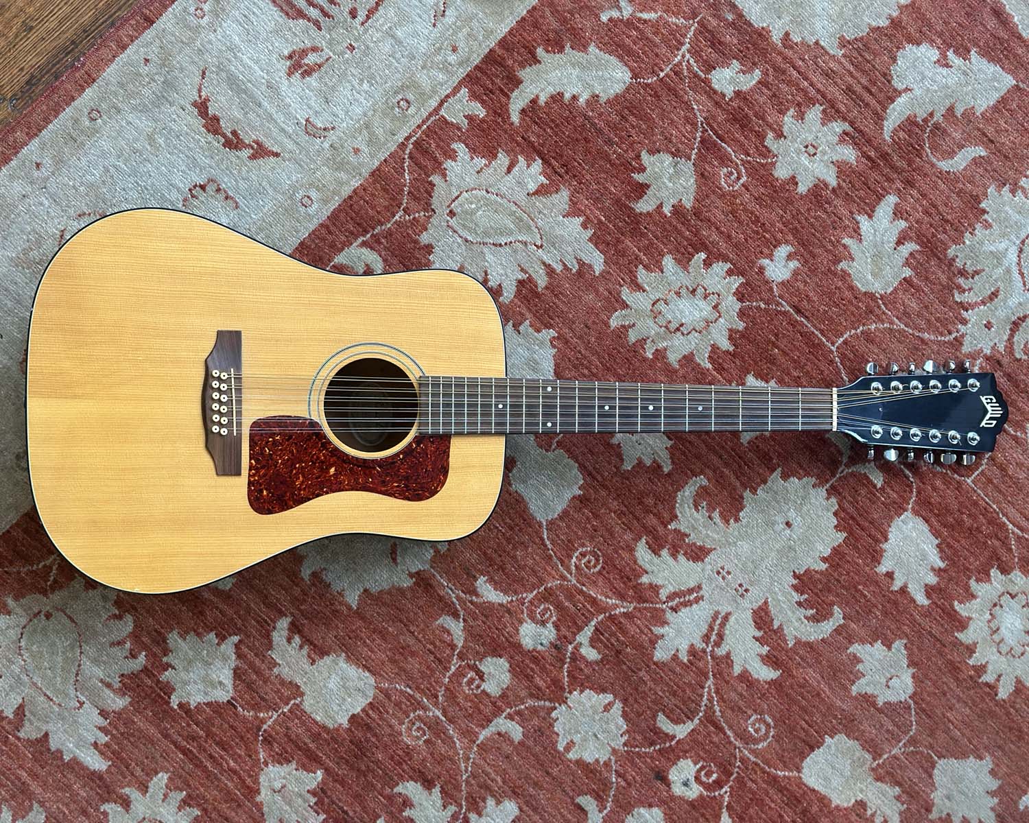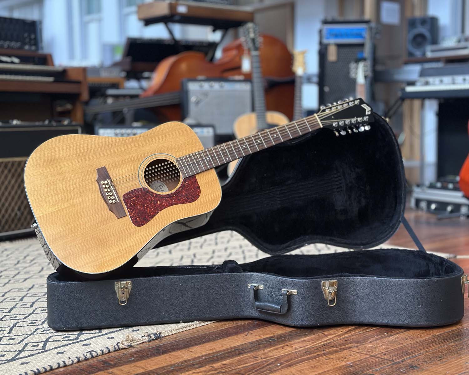 Beautiful vintage 1990s American-made 12-string dreadnaught with solid tonewoods - spruce top and mahogany back and sides, with gloss finish, mahogany neck with rosewood fretboard with 20 frets and 25.5" scale length.