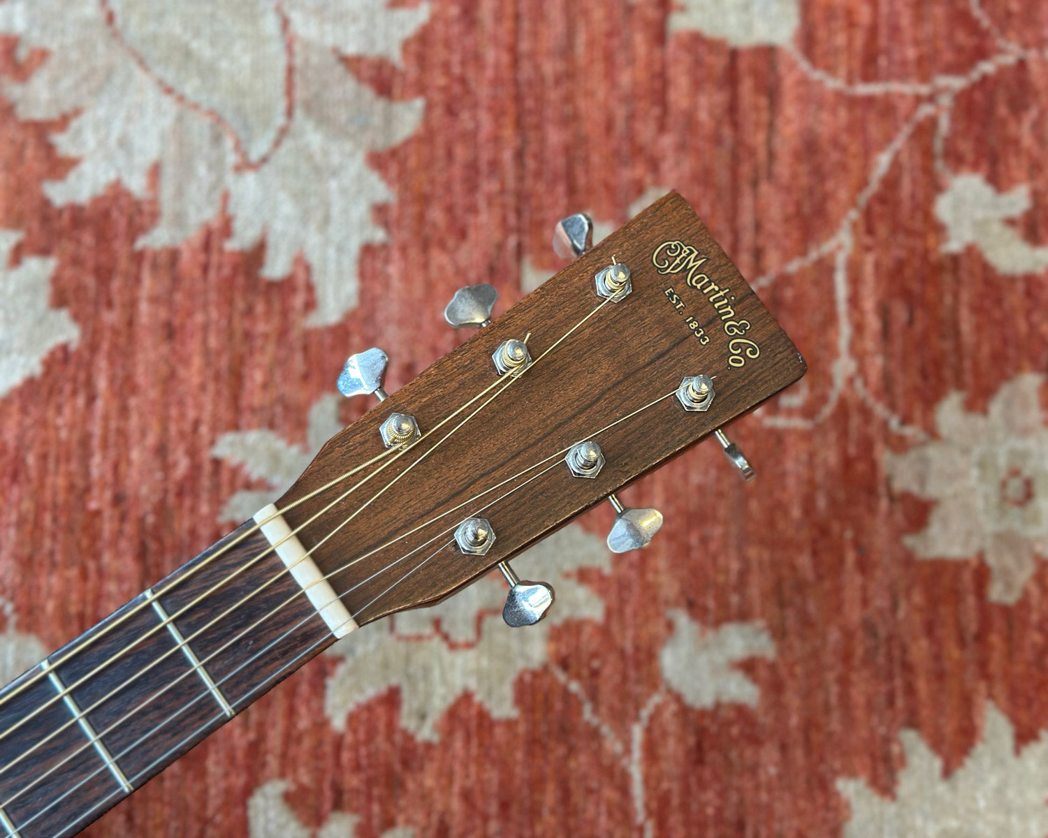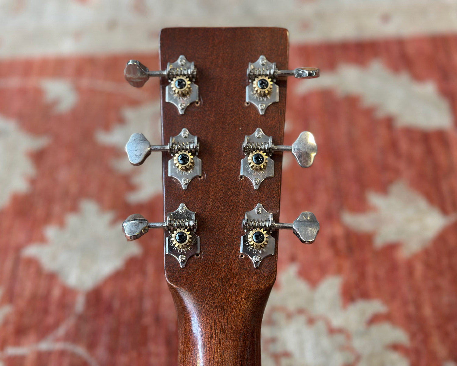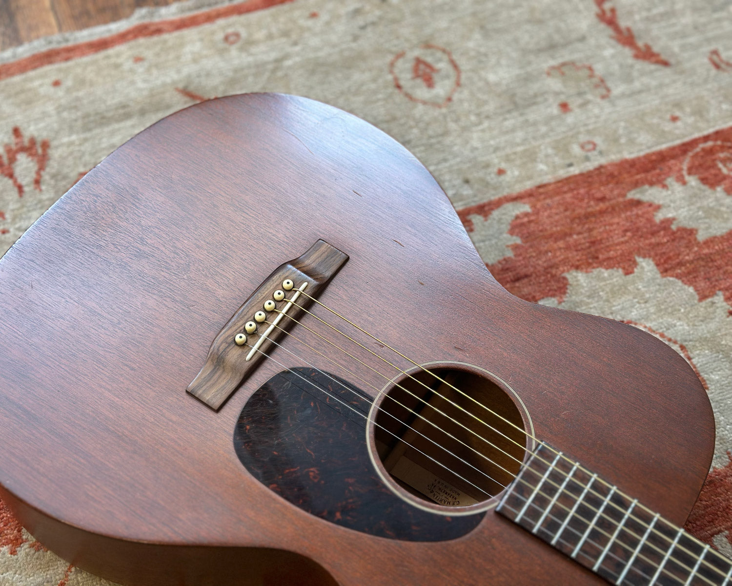 The 000-15M is one of Martin’s most beloved modern classics. All-mahogany construction gives it a dark, woody tone that feels broken-in from the first strum. It sits comfortably in the lap with the 000 body shape, perfect for fingerpickers and folk strummers chasing earthy mids and mellow top end. The satin finish, open-gear tuners and simple diamond inlays keep it stripped-back and vintage-inspired, while the Modified Low Oval neck makes long sessions easy on the hands.