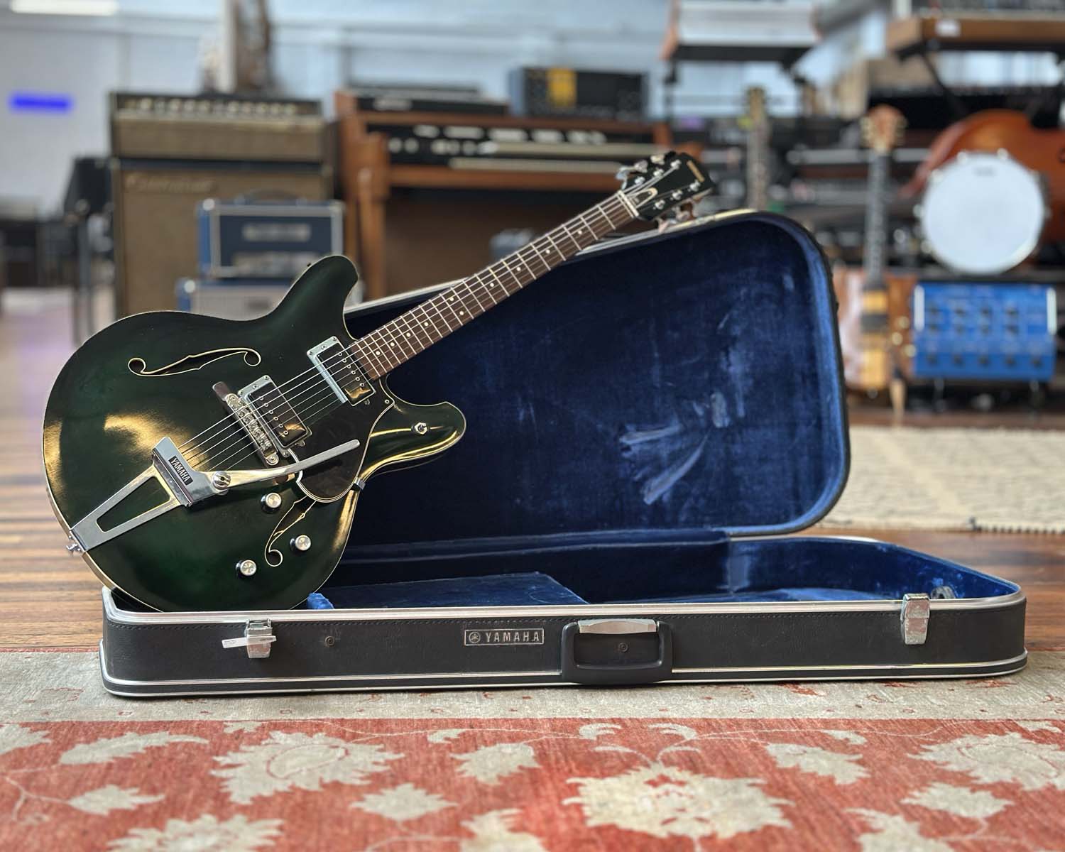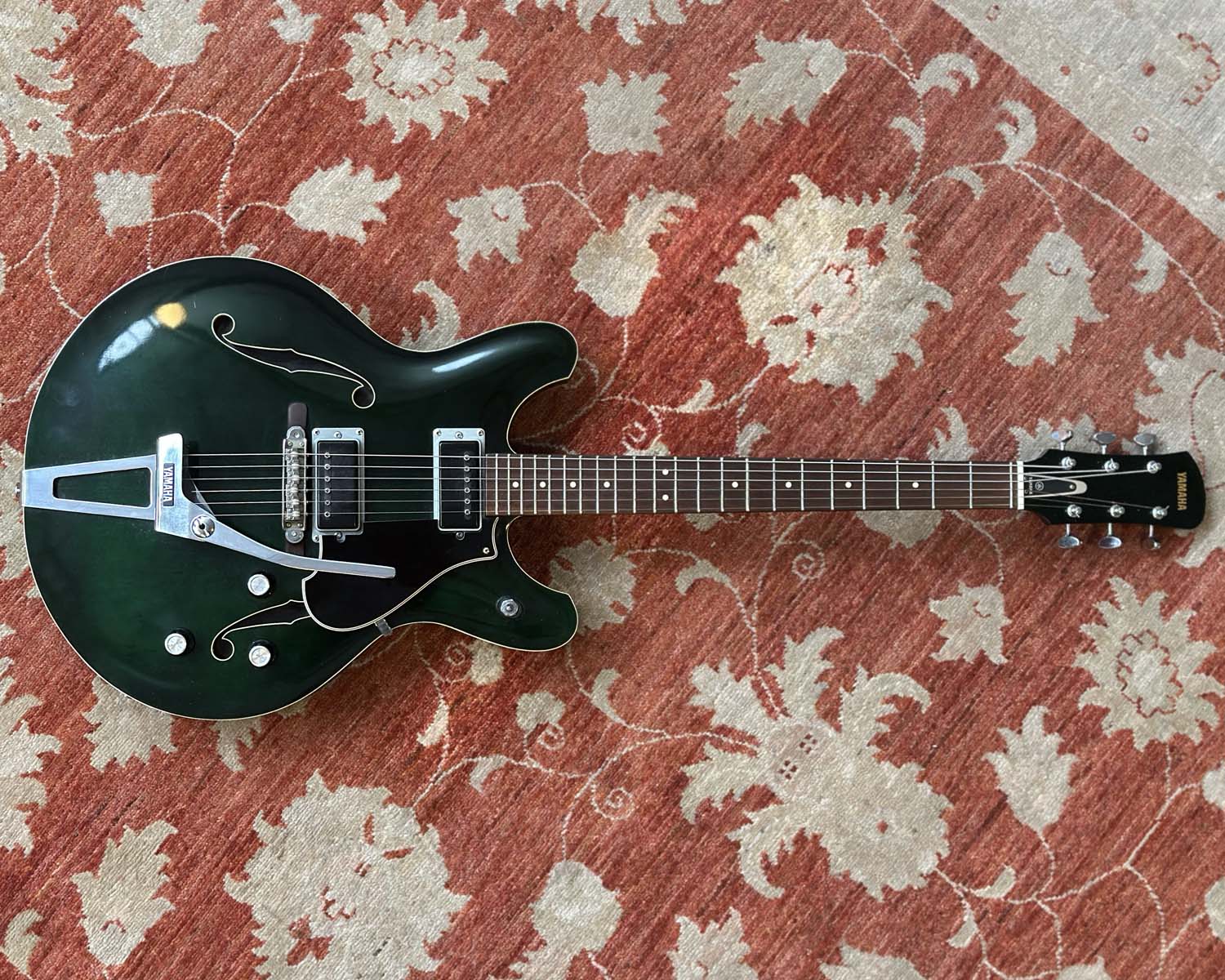 Twin low-output humbuckers and Yamaha’s unique balancer circuit provide a wide tonal palette from mellow jazz cleans to jangly pop and light breakup. With its zero fret, tremolo tailpiece and bold retro styling, this rare model captures the creative energy of Yamaha’s early electric era. Made in Hamamatsu.