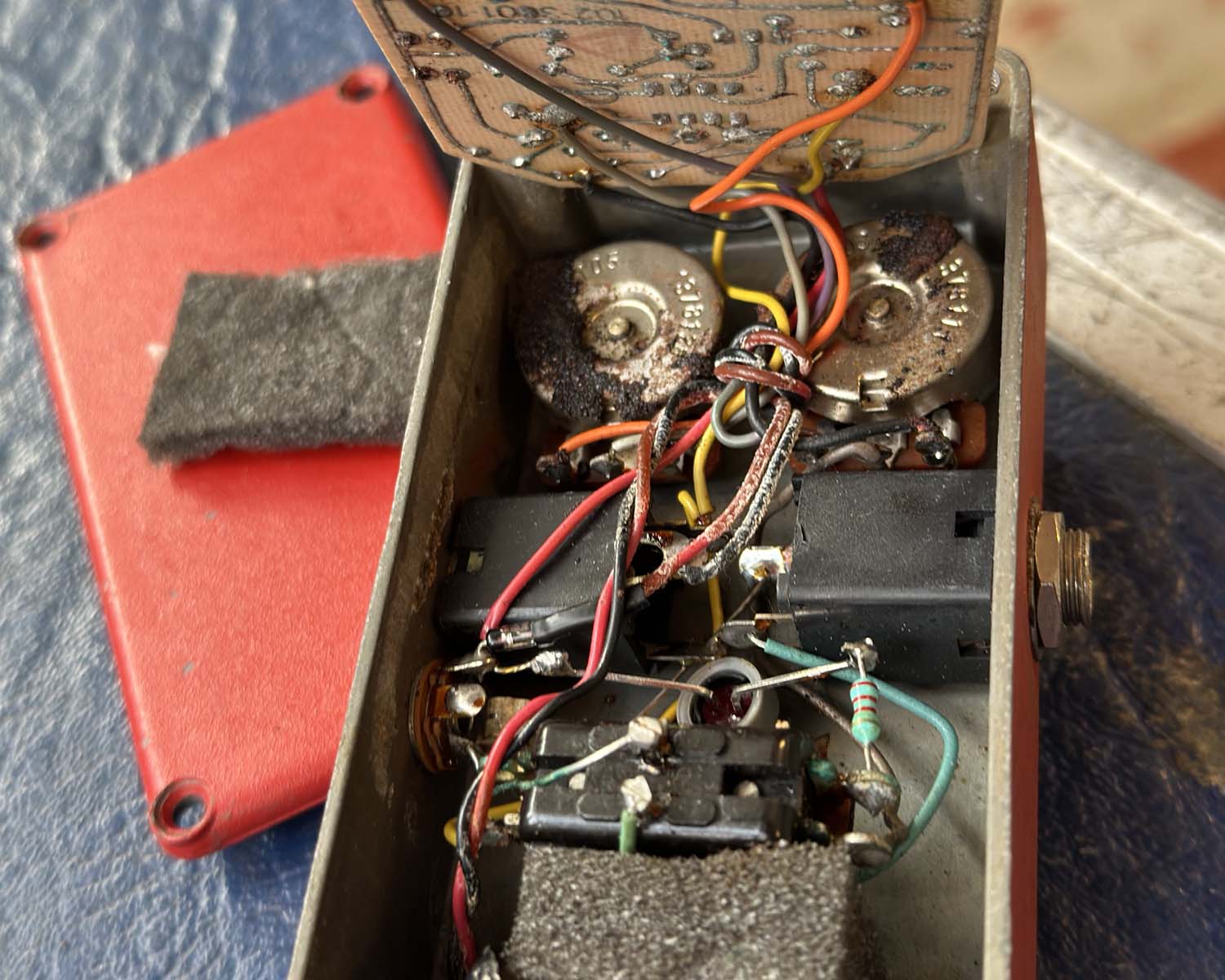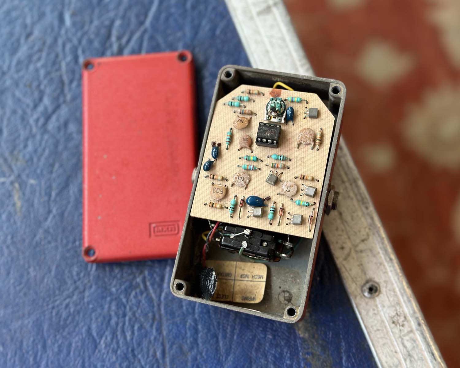 1981 MXR Dyna Comp, one of the early versions featuring and LED indicator, and 9V power jack. Classic squishy sustain, tweakable with Sensitivity and Output controls. Made in the USA.