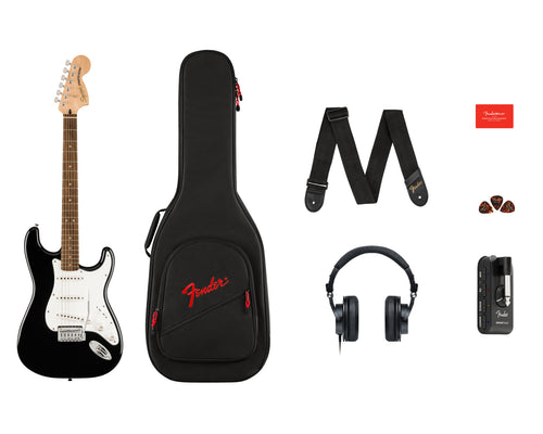 Fender Squier Affinity Series Stratocaster Mustang Micro Pack, Laurel Fingerboard, Black, Gig Bag