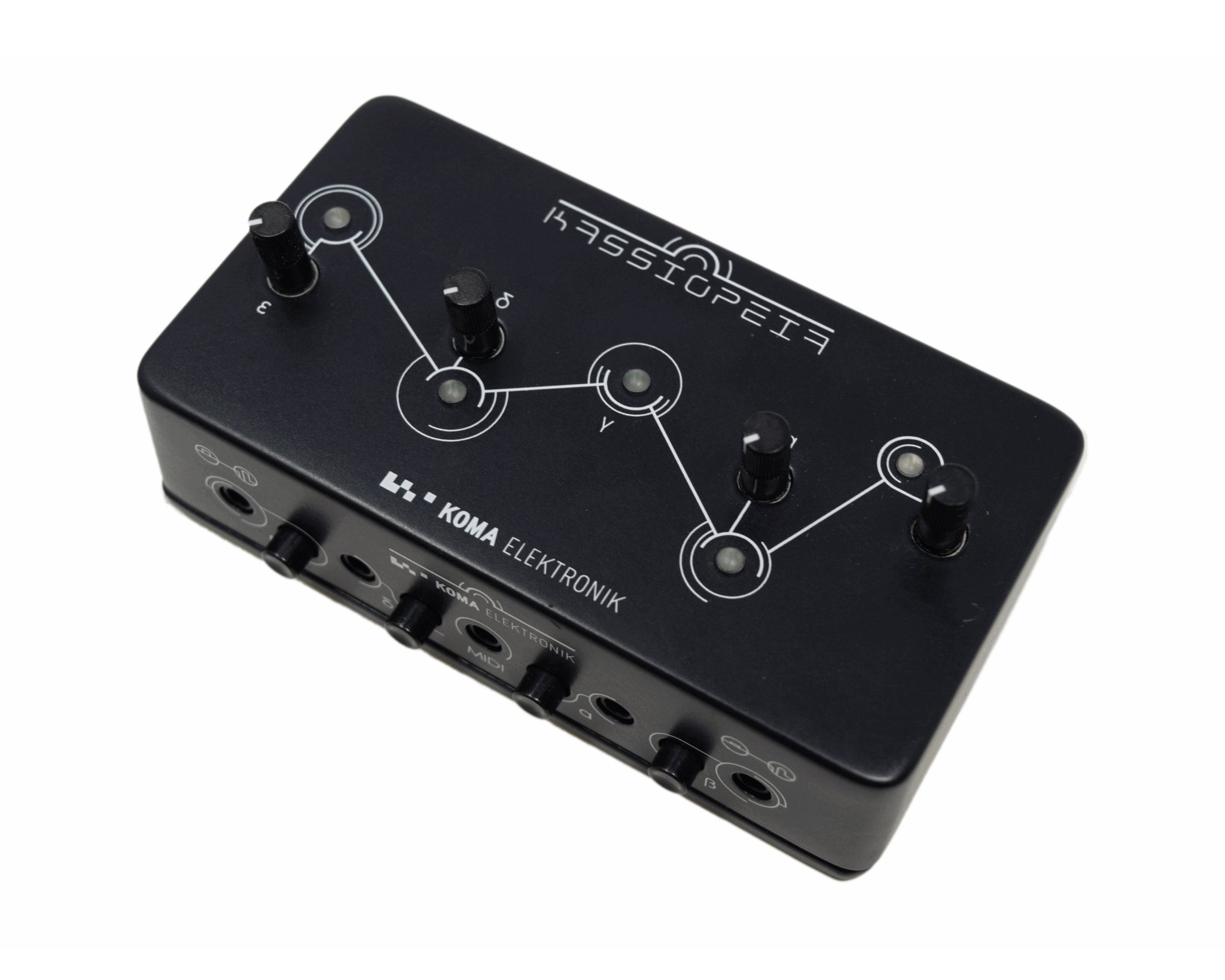 The Koma Elektronik Kassiopeia is a four-channel DC interface for translating modulation signals into usable control signals for DC-compatible gear. Just connect your CV or MIDI data to one of the four 3.5mm inputs, and your DC-compatible gear will respond with life. Motors will shake, LEDs will flash, and solenoids will punt—all in sync with the data you feed into Kassiopeia.