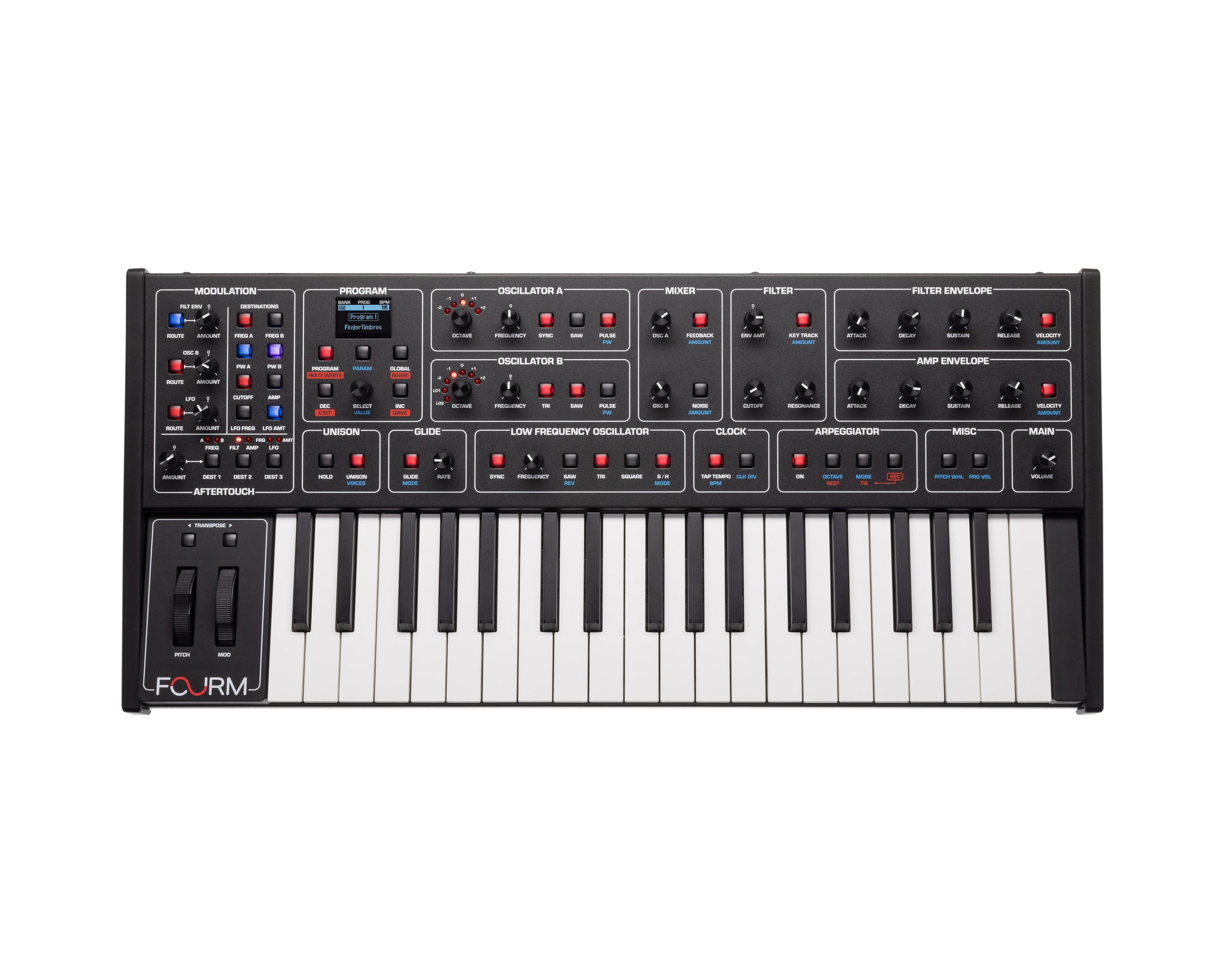 The Sequential Fourm is a compact, expressive analog synthesiser designed to Inspire. With its iconic Sequential tone, hands-on modulation, and a uniquely responsive Tactive keybed, Fourm is a creative partner that brings your musical ideas to life.