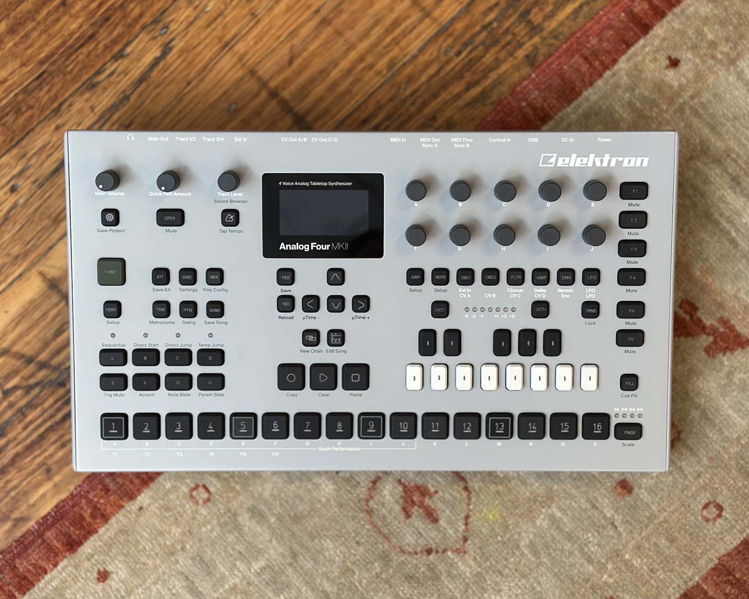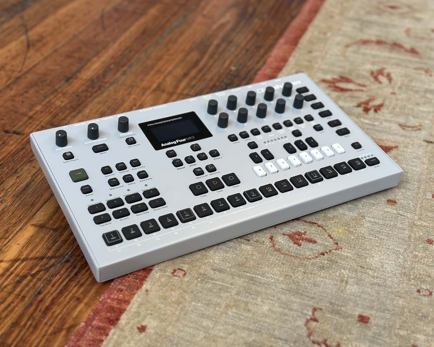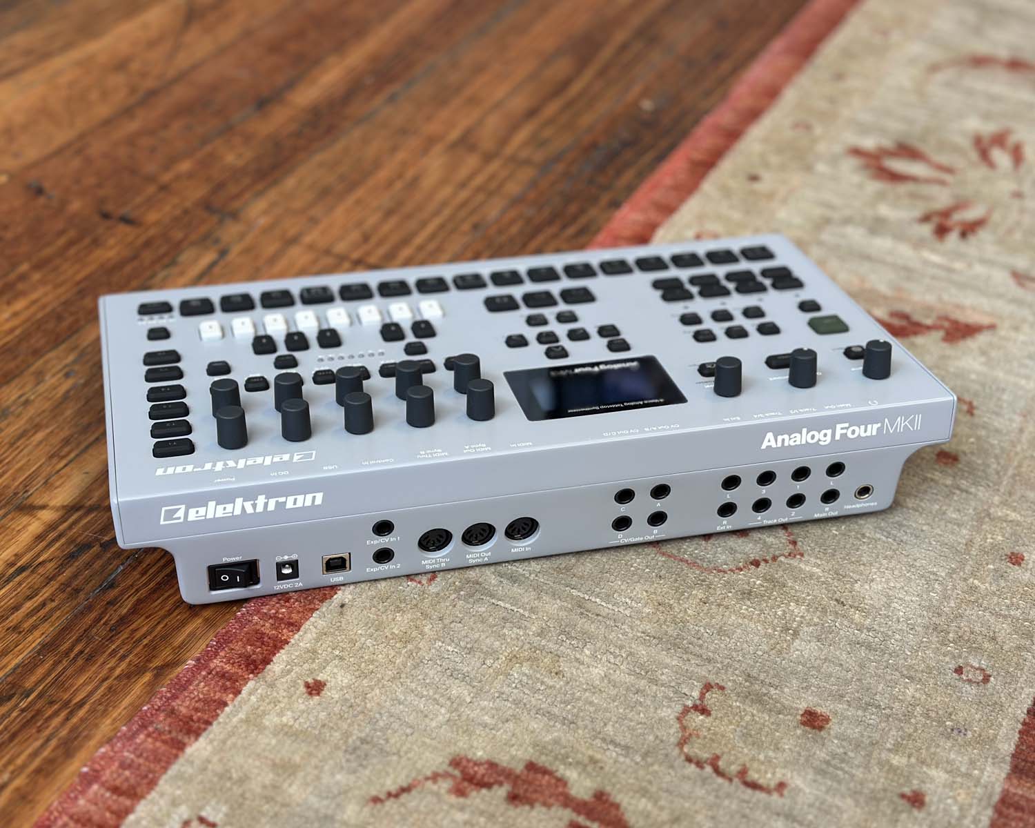 The Analog Four MKII represents the best of two worlds. Inimitable analog impact combined with razor-sharp digital accuracy. Tweaked circuitry delivering deeper bass than ever, new powerful sound control possibilities, dedicated outputs for each voice. Four voice analog polyphonic synth with CV/Gate and DIN sync outputs, for controlling external analog gear in great detail. Also incorporates Overbridge for seamless integration into DAW's.