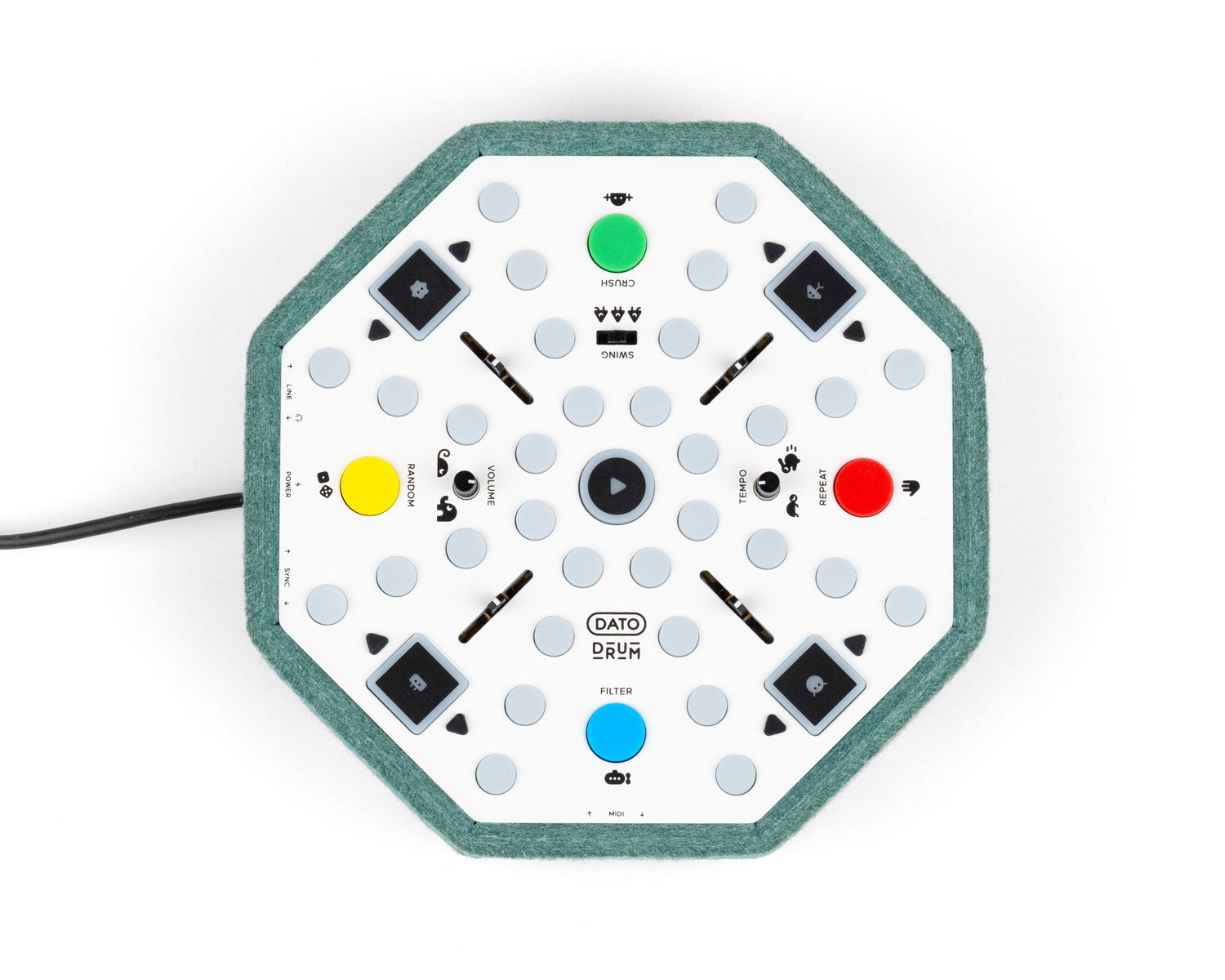 Housed in a solid metal enclosure wrapped in soft felt, Dato DRUM is built to live happily on a coffee table or studio desk. A built-in speaker makes instant jams easy, with line I/O, full-size MIDI, sync connections, and USB-C power allowing it to slot neatly into more advanced setups. Made in the Netherlands, it balances toy-like accessibility with genuinely inspiring musical depth.