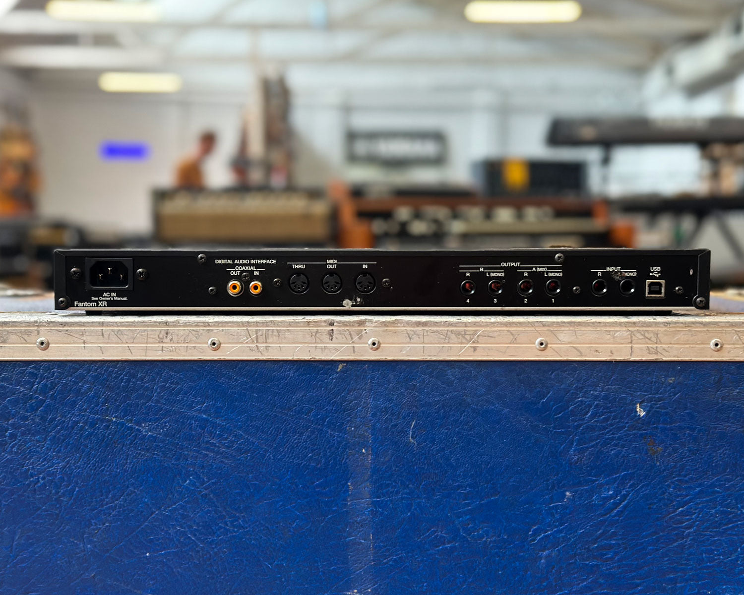The Fantom-XR brings powerful sampling and synthesis to a convenient 1U rack module. With room for over 1GB of sounds, this module sets a new standard for expandability. The 128MB internal wave ROM includes new Patches like an 88-key split piano, plus room for six SRX expansions. Full user sampling is also supported, along with .WAV/AIFF compatibility for loading samples via USB.