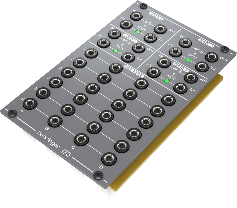 Behringer's SYSTEM 100 173 Quad Gate Multiples is an affordable 16HP reproduction of an original Roly “System 100M” circuit from the past compatible with the standard Eurorack format.