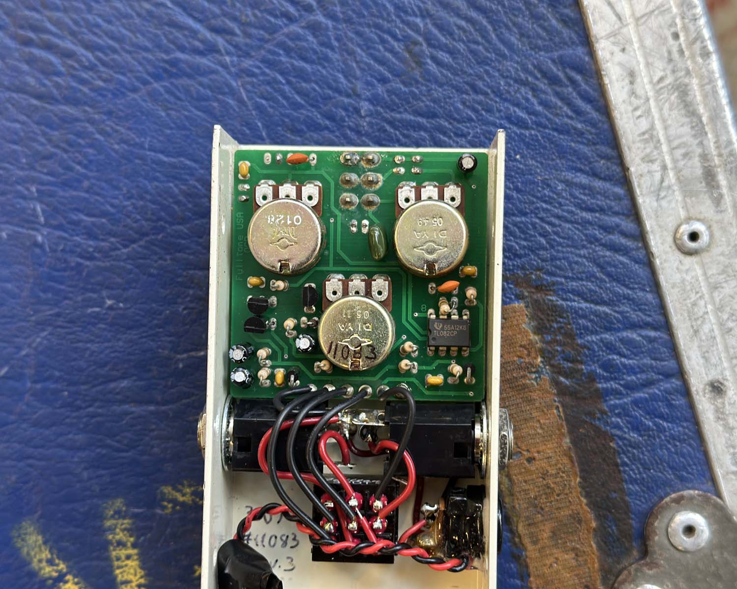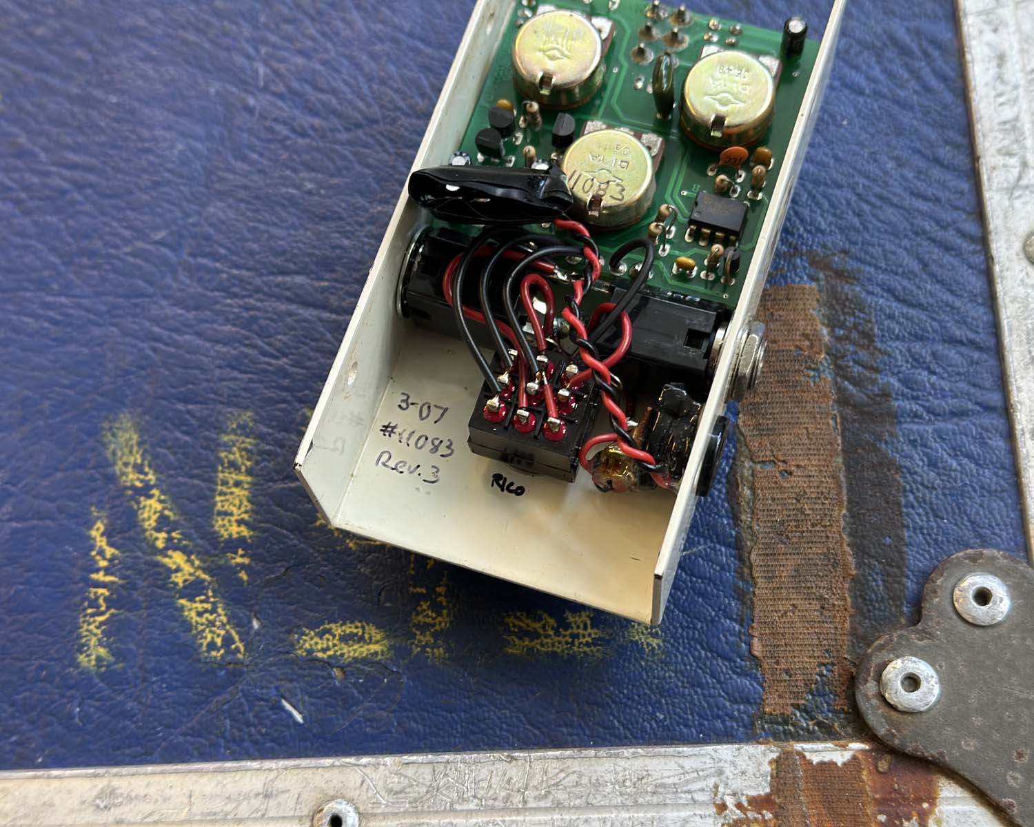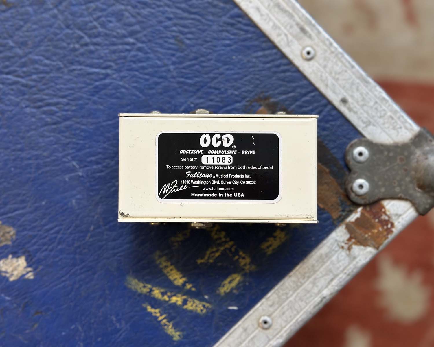 The Fulltone Obsessive Compulsive Drive is an overdrive pedal that responds to picking dynamics and touch sensitivity plus enhancing beautiful harmonics. The Obsessive Compulsive Drive reacts beautifully to big fat chords and fares well with leads and solos. Rare version with blue LED handwired and signed by the infamous 'RICO'.