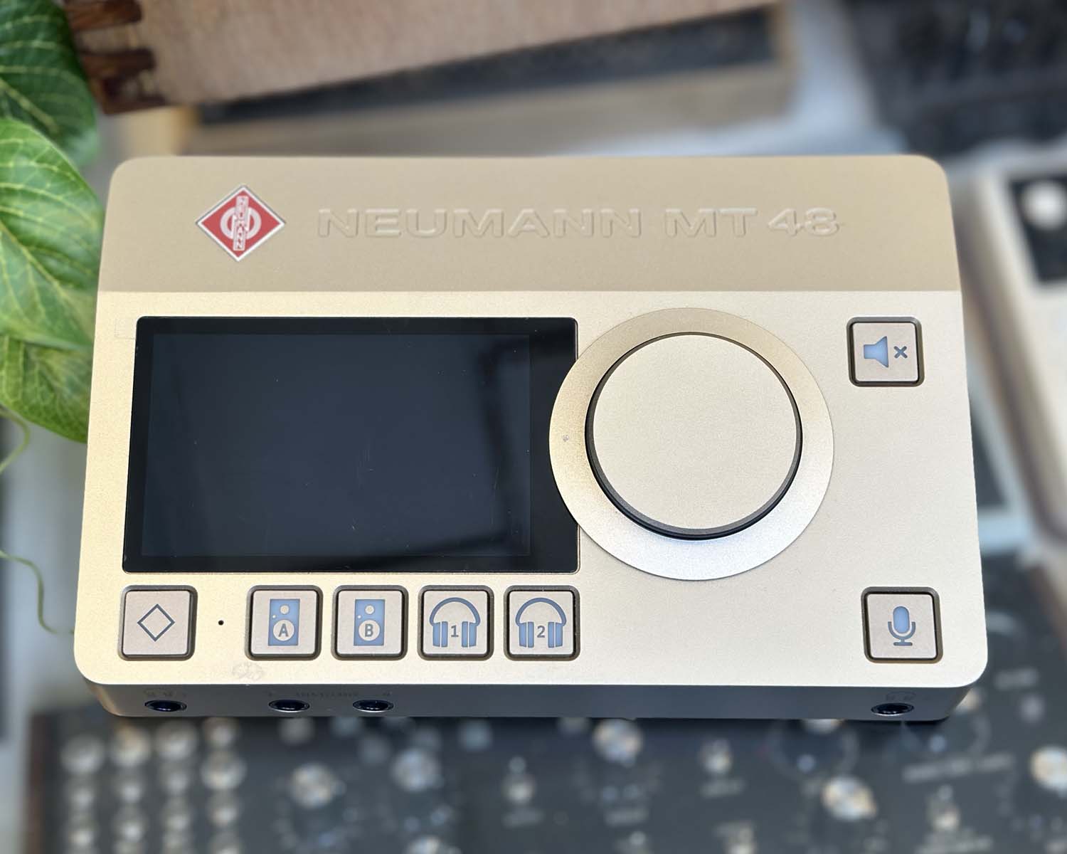 Neumann’s MT 48 is built as a no-compromise studio hub, pairing pristine conversion with a hands-on touchscreen that makes routing and mixing feel effortless. Developed with Merging Technologies, it taps into their ultra-precise converter design, offering a massive 136 dB of dynamic range that far outperforms typical interfaces. Two ultra-quiet mic/line preamps with generous gain, dedicated line and instrument inputs, four monitor-grade outputs, and two powerful headphone amps form the heart of the unit, all tied together with Neumann’s reference-level AD/DA architecture.