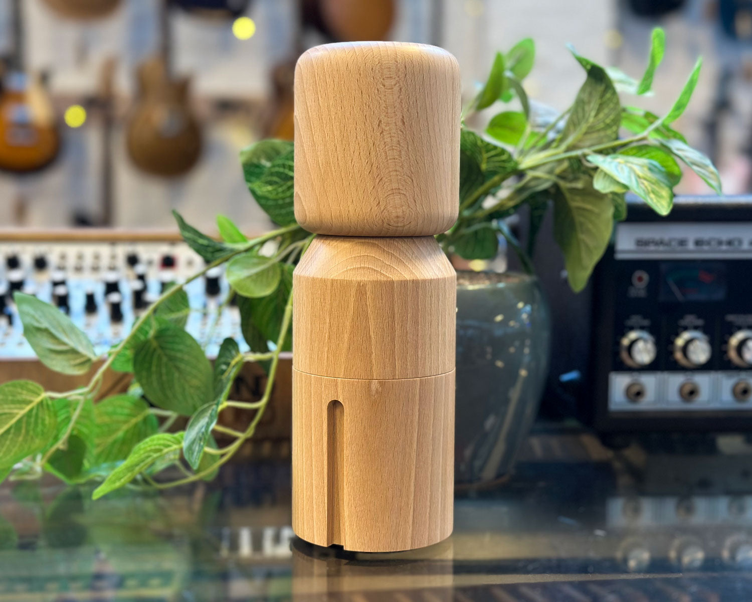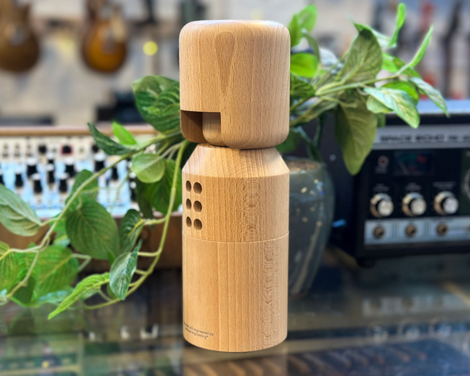 One of eight handcrafted wooden choir dolls released by Teenage Engineering designed to perform choral arrangements and original compositions via MIDI over Bluetooth, each made from solid beech and finished with hard wax oil. Inside every doll is a removable speaker module that doubles as the CPU and BLE transmitter, delivering up to four hours of rechargeable performance. Their built-in melodic algorithm uses counterpoint composition to generate layered harmonies, while motion sensors allow playful physical control through tapping, tilting, or movement. Each doll has a distinct vocal character, and when grouped together they automatically connect and form a responsive ensemble, blending into a dynamic choir that can be conducted wirelessly using compatible MIDI controllers.