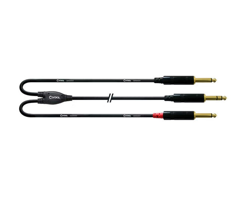 Cordial Essentials REAN Plug 6.3mm Stereo Gold to 2x 6.3MM Mono Gold - Long Pigtail Side (1.5m)