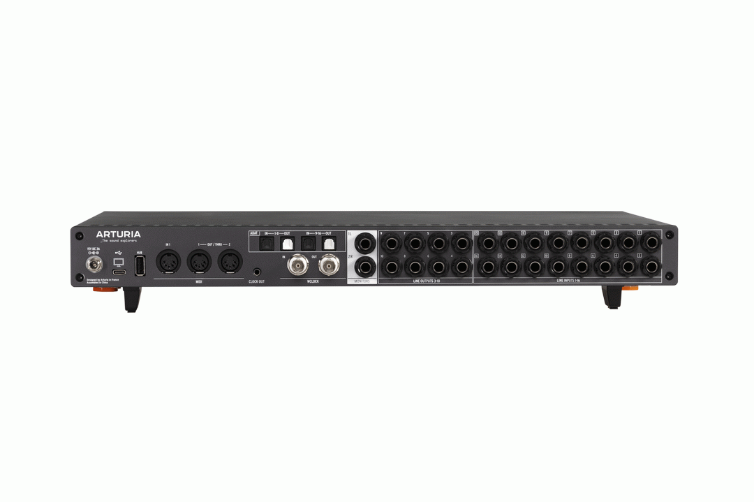 - 12 analog outputs including 8 DC-coupled TRS line outputs, stereo monitor outputs, 6.35mm outputs for re-amping or dual-headphone configuration