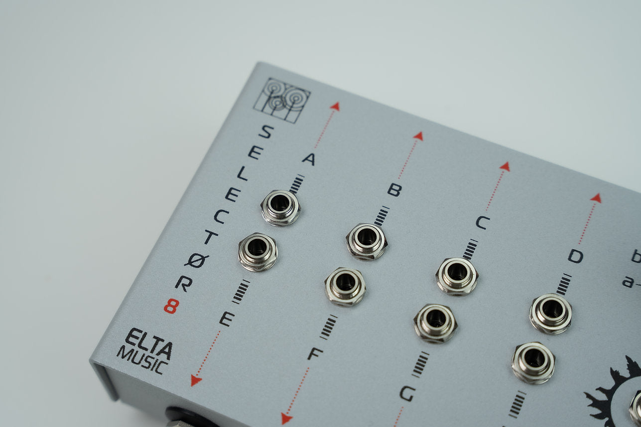 It has 8 inputs and one output, 3.5 mm and 6.3 mm audio connectors.