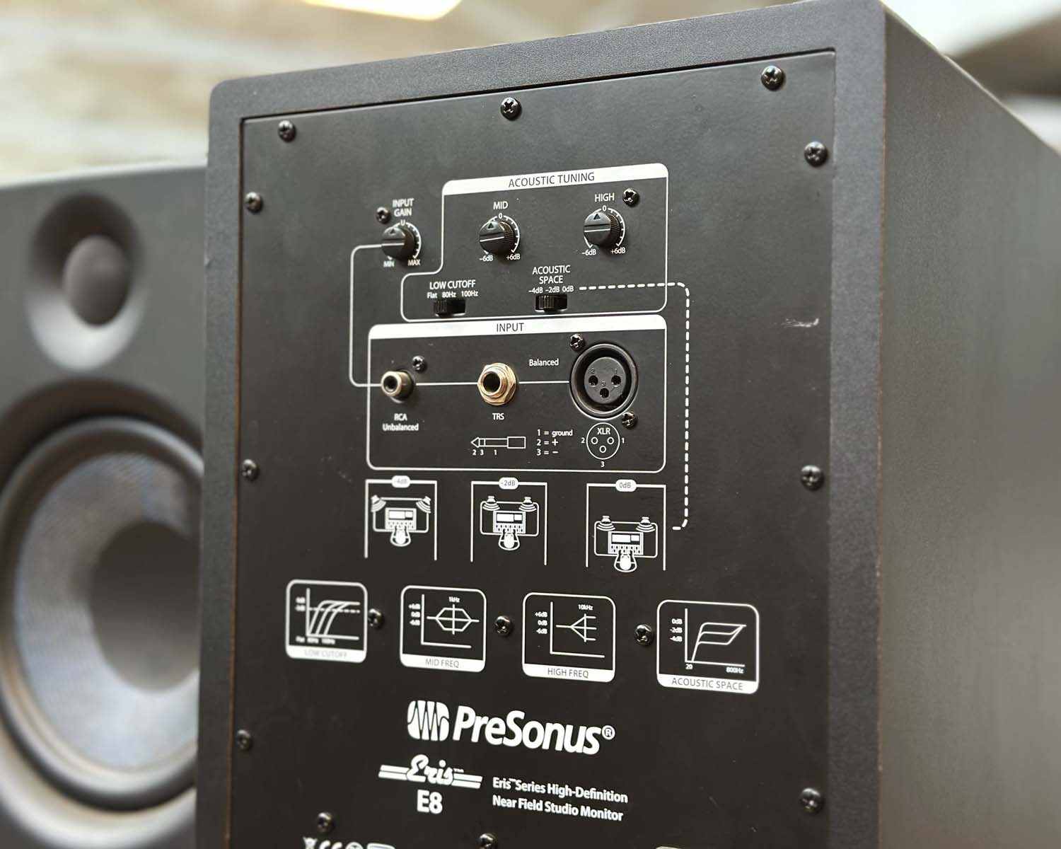 The Eris E8 delivers serious low-end authority and wide listening sweet spots, making it a favourite for project studios that need full-range clarity without a sub. An 8" woven composite driver dives down to 35Hz while the silk-dome tweeter stays smooth up top, all powered by a bi-amped 140W design. The updated EBM waveguide broadens the stereo field yet reins in vertical reflections, keeping mixes focused. With onboard acoustic tuning - including high-pass filters, mid and high trims, plus an “Acoustic Space” switch - the E8 adapts easily to tight control rooms or larger setups, giving you the flexibility to shape its response to your space.