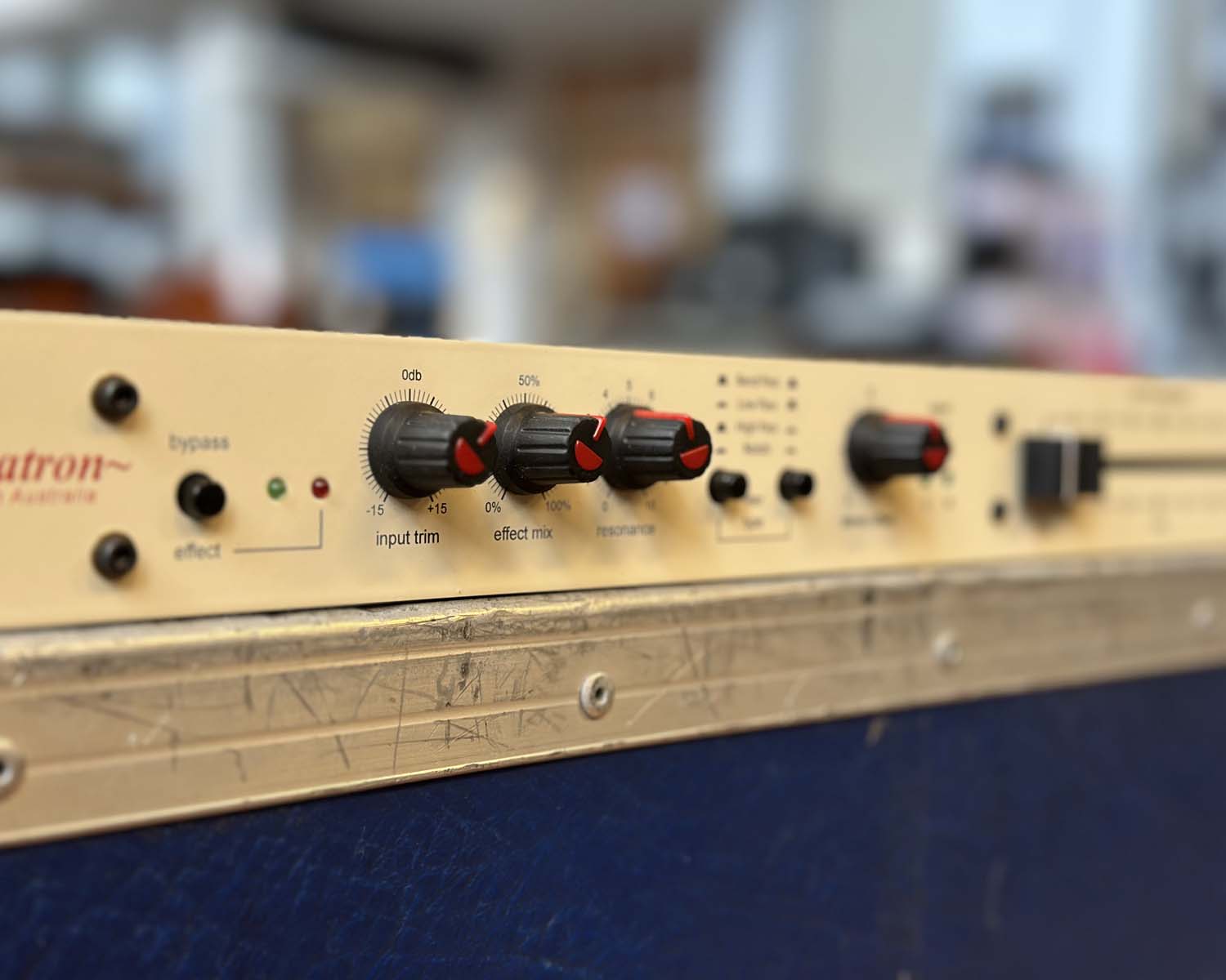 The Sebatron Fleque is a 19-inch rackmount balanced filter built for detailed studio tone shaping. It features four selectable filter modes: Band-Pass, Low-Pass, High-Pass, and Notch, each controlled by a smooth sweepable frequency fader for precise control. Input Trim, Effect Mix, Resonance, and Stereo Offset knobs allow refined shaping across stereo signals. Balanced XLR inputs and outputs keep the signal clean, while an additional jack output offers flexible routing for outboard setups.