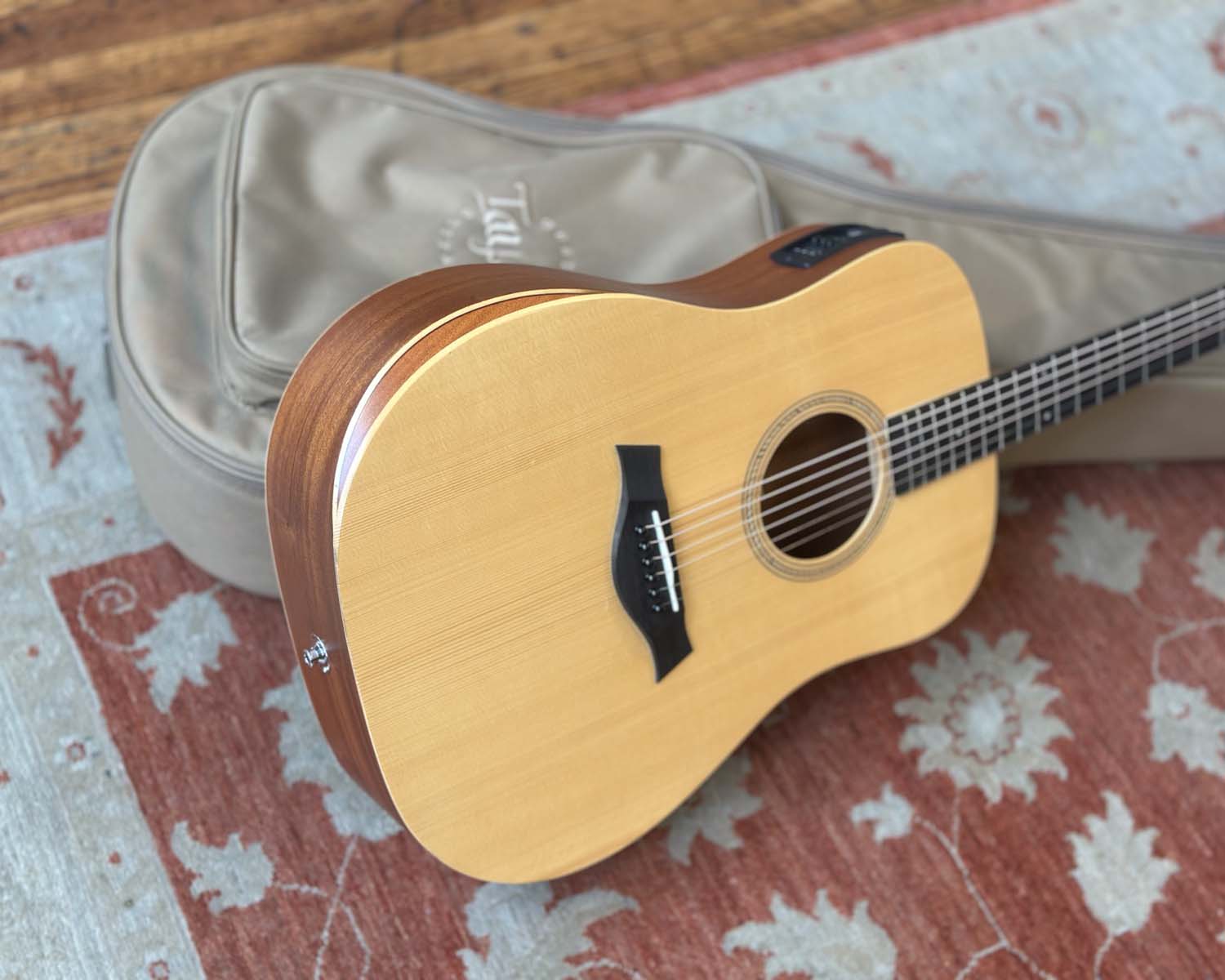 The perfect place to start learning or add some spark to any seasoned player's setup, the Taylor Academy 10e features a dreadnought body that plays smooth and sounds full. The torrefied solid spruce top gives it a warm, aged character, while the body pumps out a rich, balanced tone with plenty of volume. The slim neck and slightly narrower 1-11/16" nut make chords and transitions easy on the hands, and the built-in armrest adds comfort for long sessions. Plug in with the ES-B pickup and onboard tuner, and you’ve got a stage-ready acoustic that feels as good as it sounds.