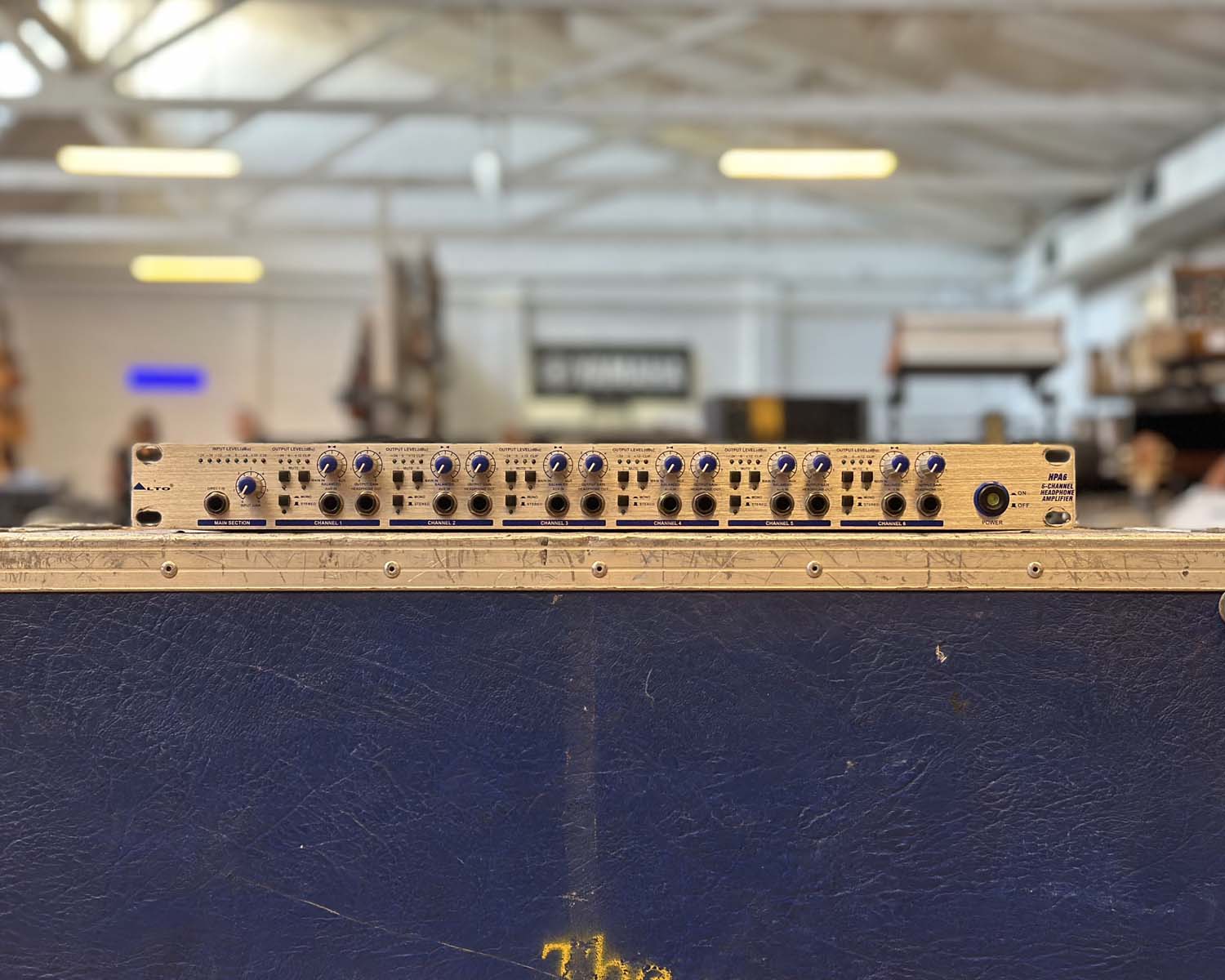 6 Channel Stereo Headphone Amplifier. Six independent high-power headphone amplifiers in a compact, 1RU size. Stereo Aux Input on each channel level adjustments for click/loop monitoring. Additional Direct Input on front panel: mix in additional sources instantly.