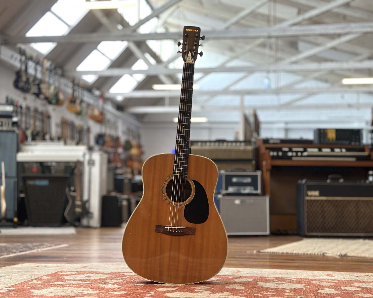 A lovely '70s Japanese-made Suzuki steel-string with a soft, gentle sound, perfect for singer-songwriters of all levels. Featuring a shallow dreadnought body for maximum comfort, layered spruce top and mahogany back & sides, this guitar is perfect for the living room, stage or even on the road.