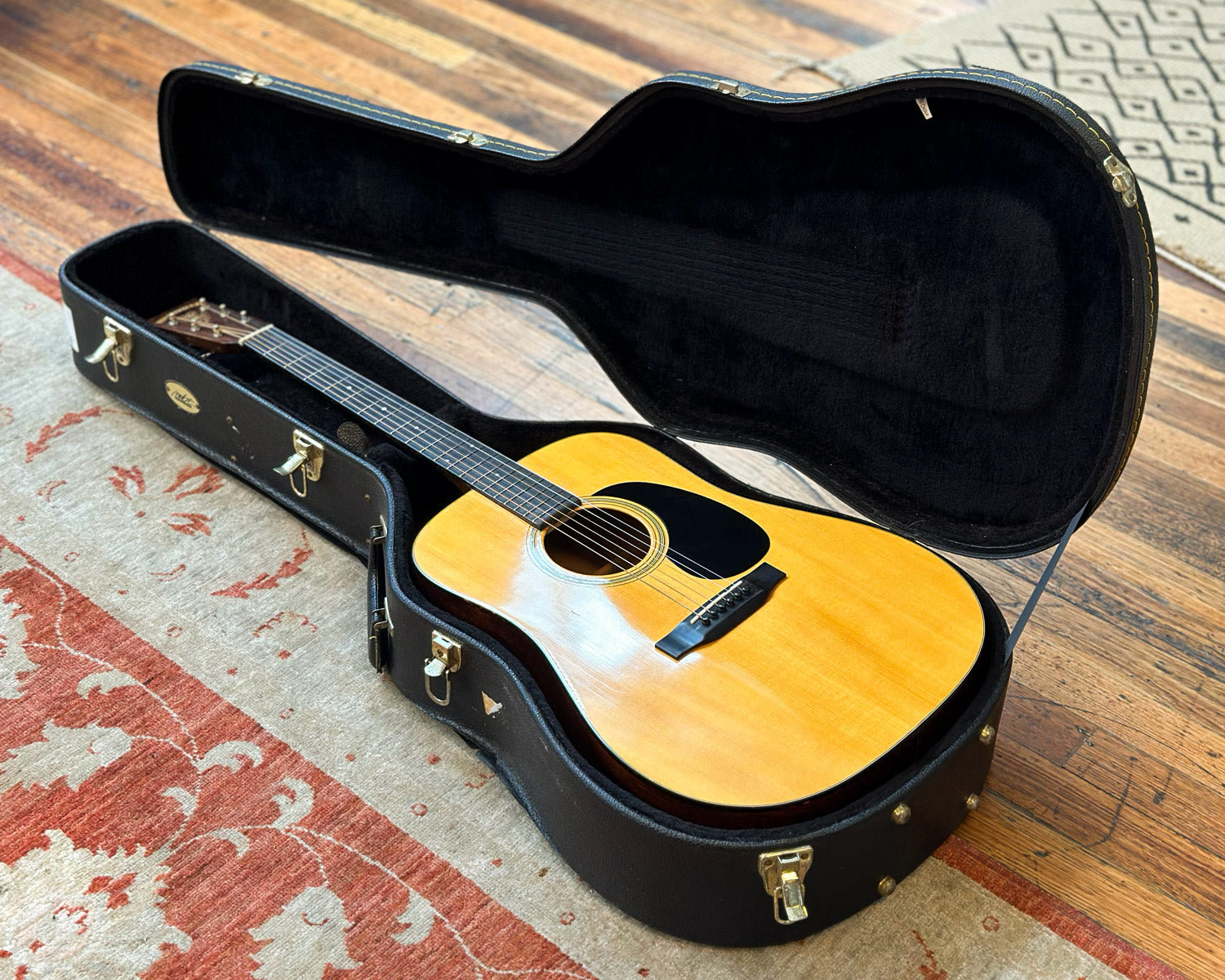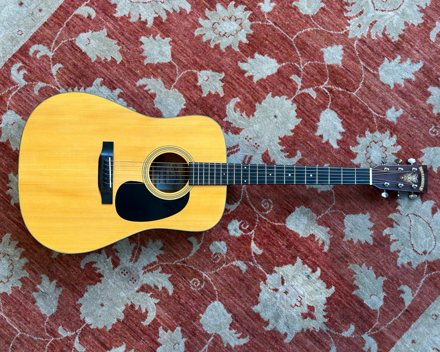 D-18 style Dreadnought with solid Adirondack spruce top and mahogany back and sides and Ebony fingerboard.
