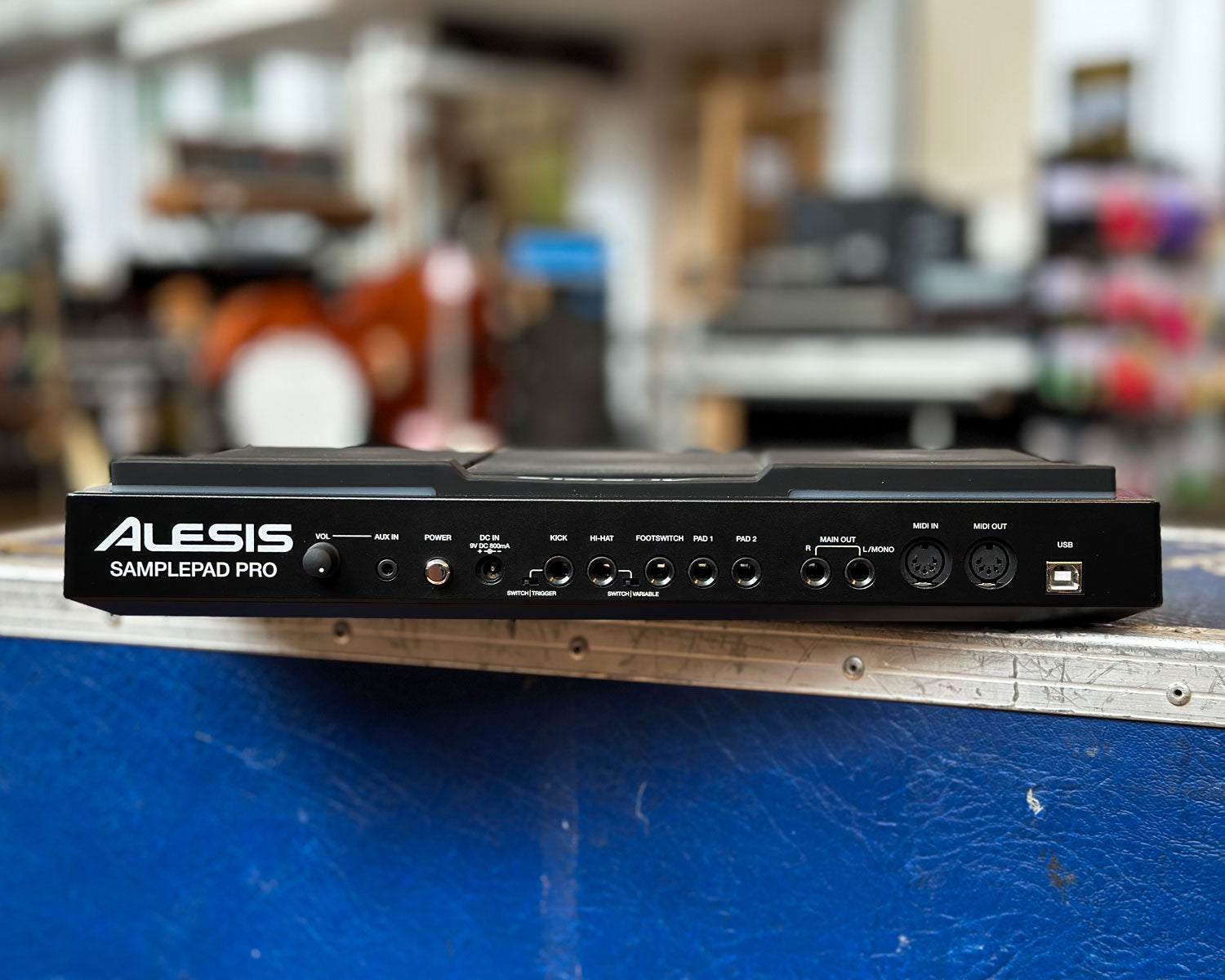 SamplePad Pro featuring MIDI dual zone isolated programmable pads, 2 additional drum pad inputs, kick input, hi-hat input, 200+ built in drum sounds with SD card compatibility to load your own sounds on.