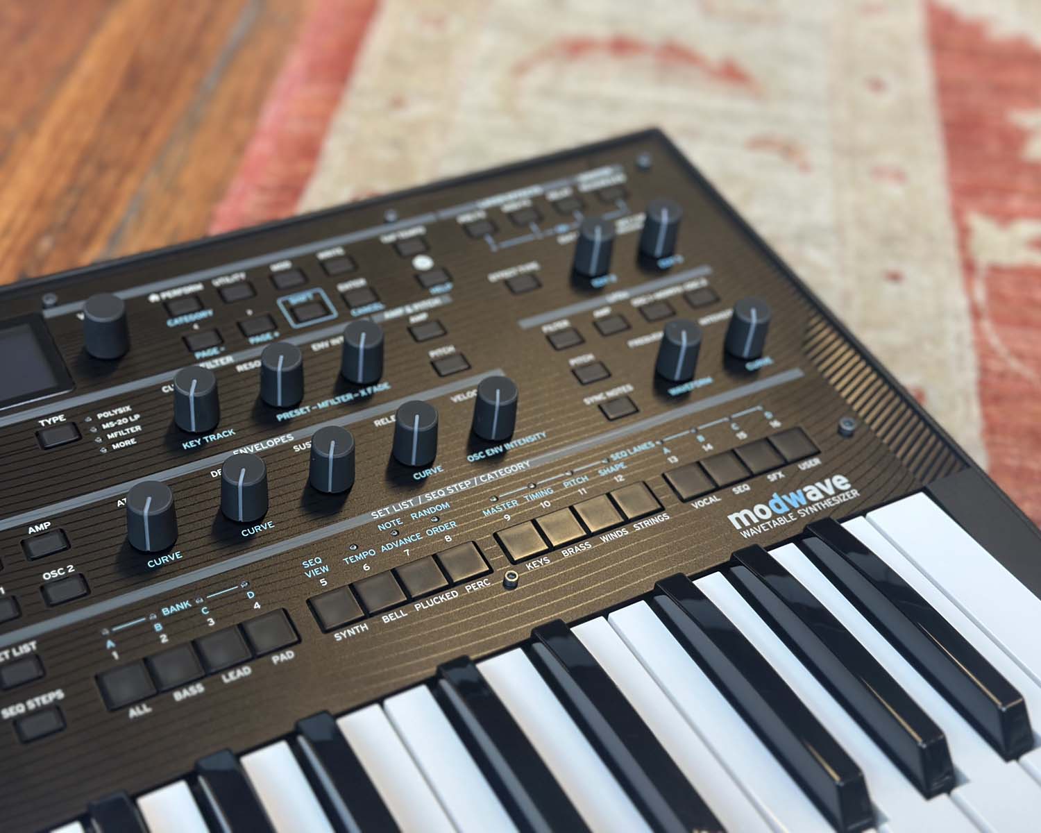 Modwave builds on KORG's DW series legacy and transforms it into a modern monster synth, featuring incredibly deep wavetable oscillators, gorgeous filters, wildly flexible modulation, unmatched polyphony, comprehensive pattern sequencing, and immediately satisfying hands-on control to deliver unique, powerful, and easily customizable sounds and phrases.