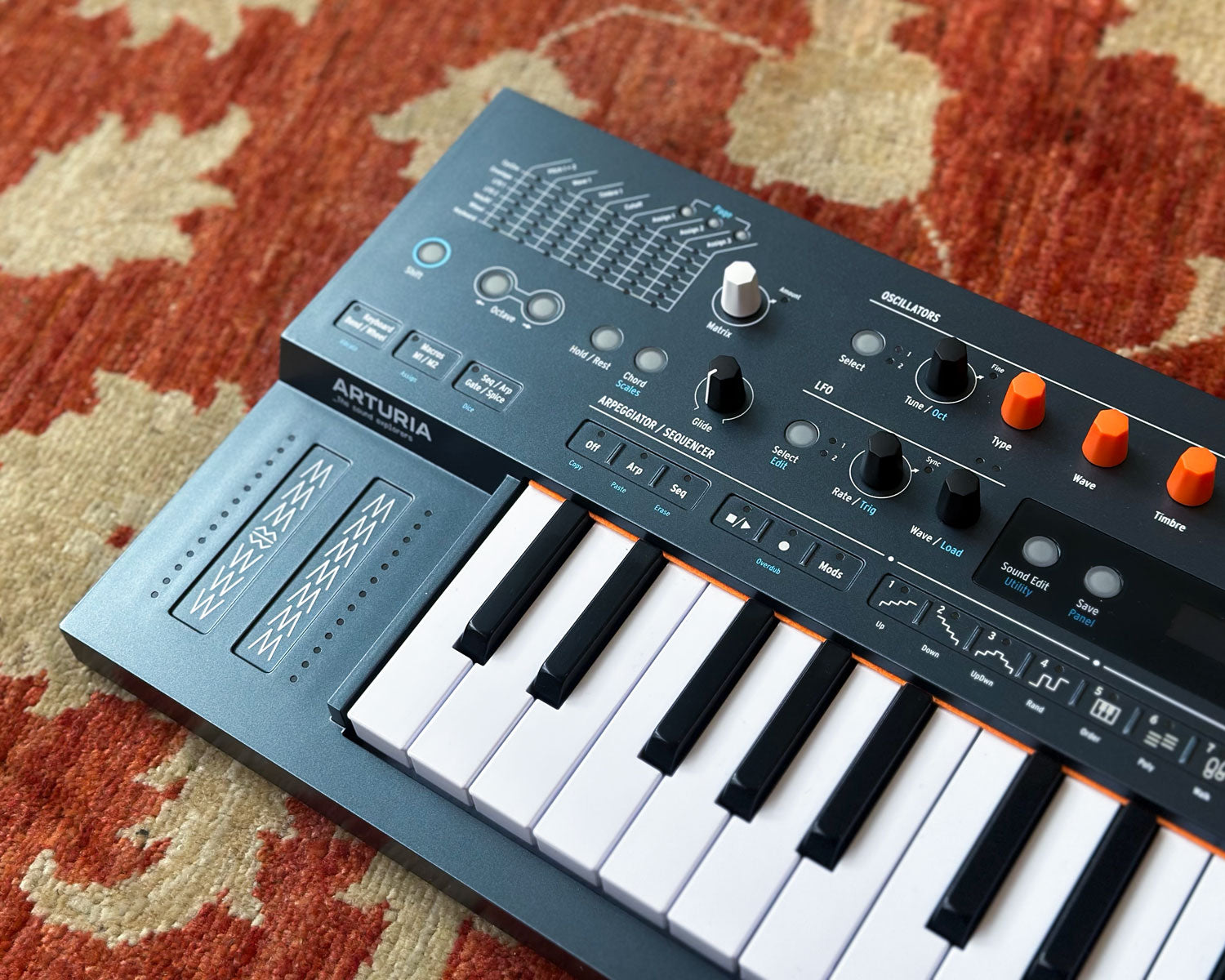The Arturia MiniFreak is a six voice polyphonic hybrid keyboard that fuses two digital sound engines with analogue filters, outside-the-box sequencing, and instant-access modulation. The MiniFreak encourages users to escape the ordinary and explore the unconventional with a 37-note velocity-sensitive keybed with aftertouch, weave intricate evolving performances with multiple modulation lanes, and discover endless sweet spots with a built-in digital FX engine.