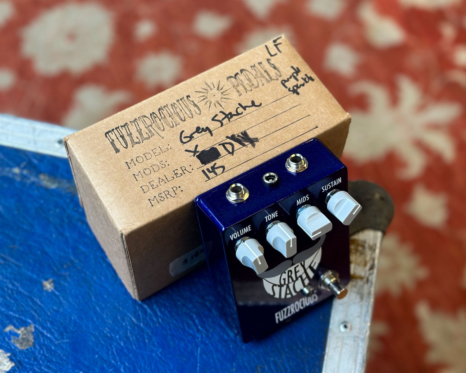 The Grey Stache is a boutique fuzz that channels the thick, saturated fuzzness of the GGG-tuned and Civil War era Muff circuits for both guitar and bass players chasing garage rock, stoner riffs and deep fuzz. You can scoop the mids for deep rumble, flatten for Muff tone, or boost them for cutting modern fuzz. Dial down the Sustain control for overdrive.