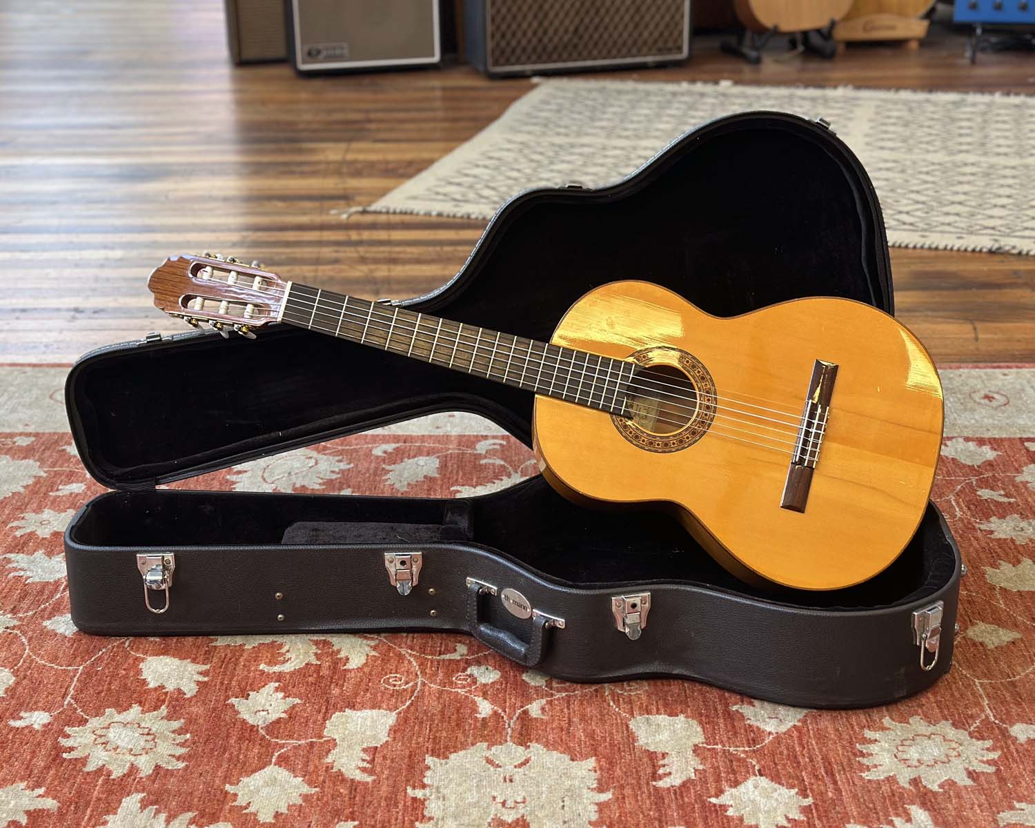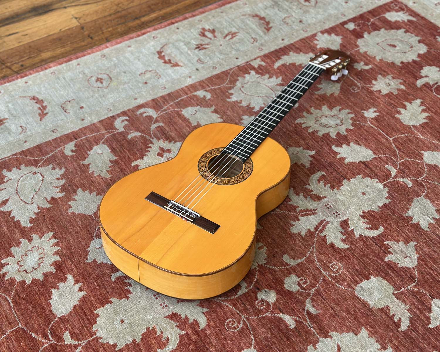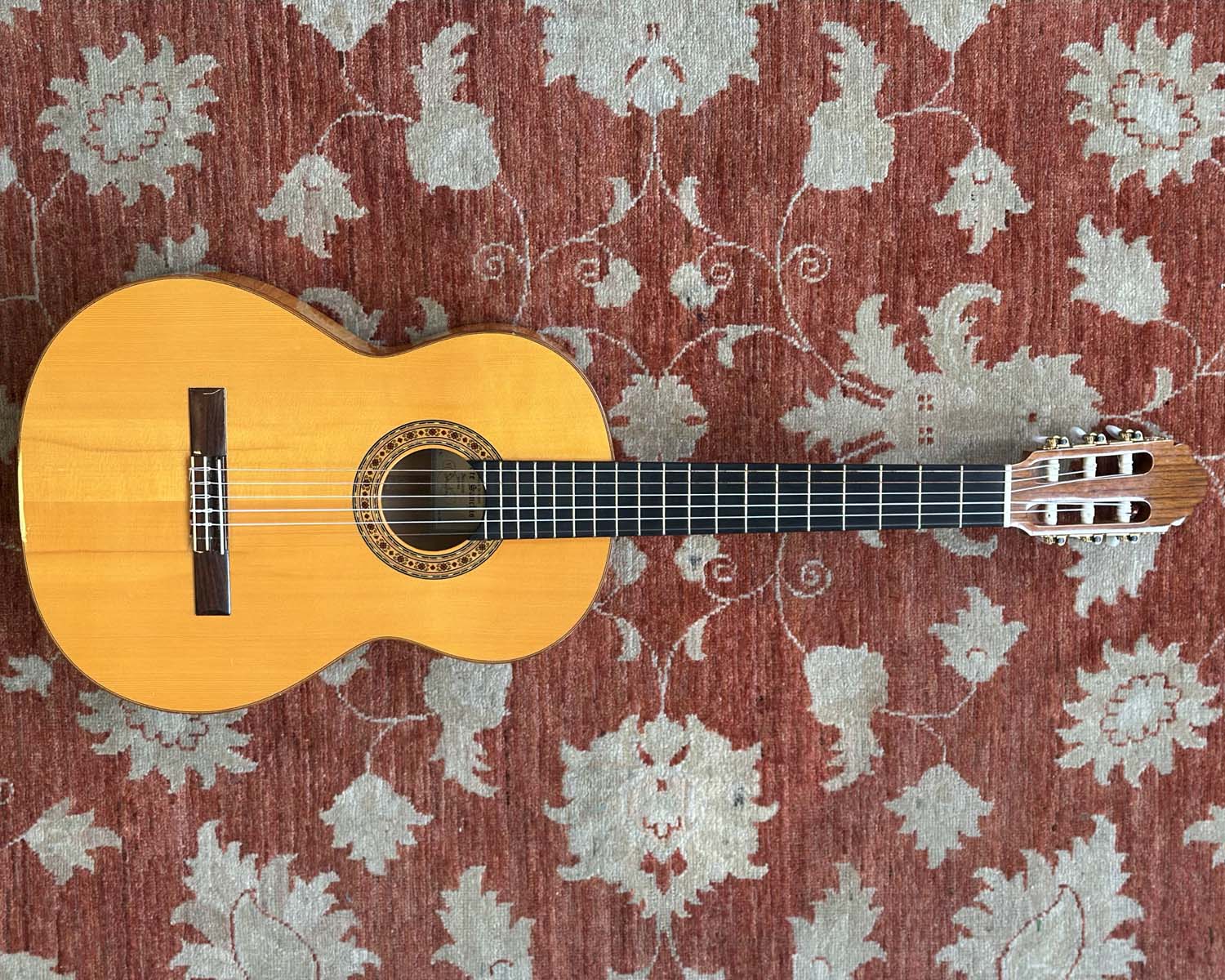 A true Flamenco custom guitar made by hand in Valencia, Spain featuring a spruce top, Spanish cypress back & sides with a mahogany neck.