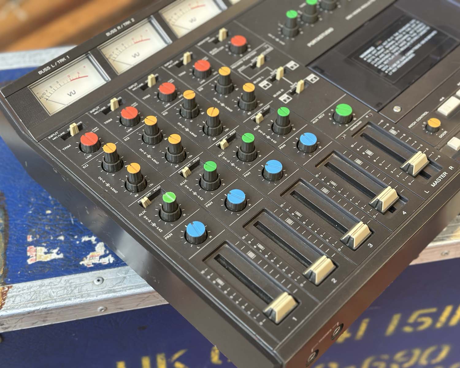 Classic 4 channel 4 track analogue cassette tape recorder with 3 Band EQ featuring sweepable midrange & two effects sends.