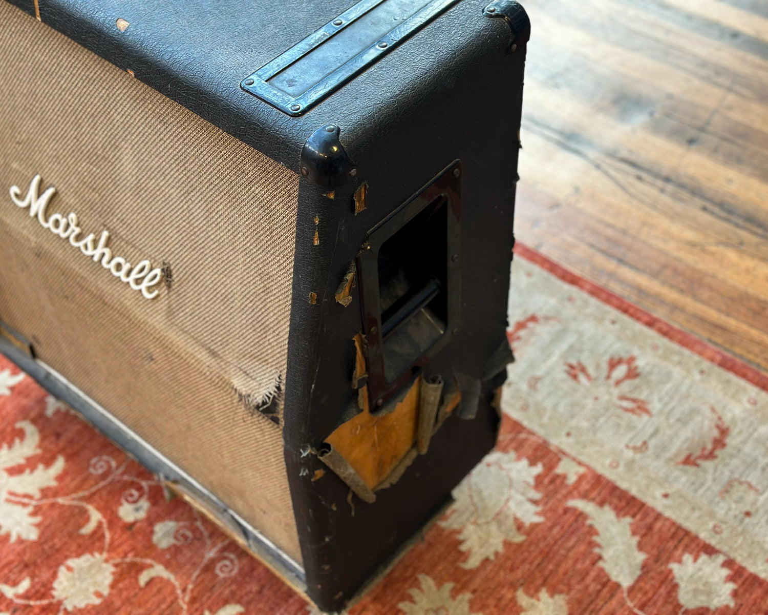 Grille has faded to natural quite beautifully, and tolex has ripped in several places as pictured; this one has been around the block a few times, most notably with Guttersnipes.