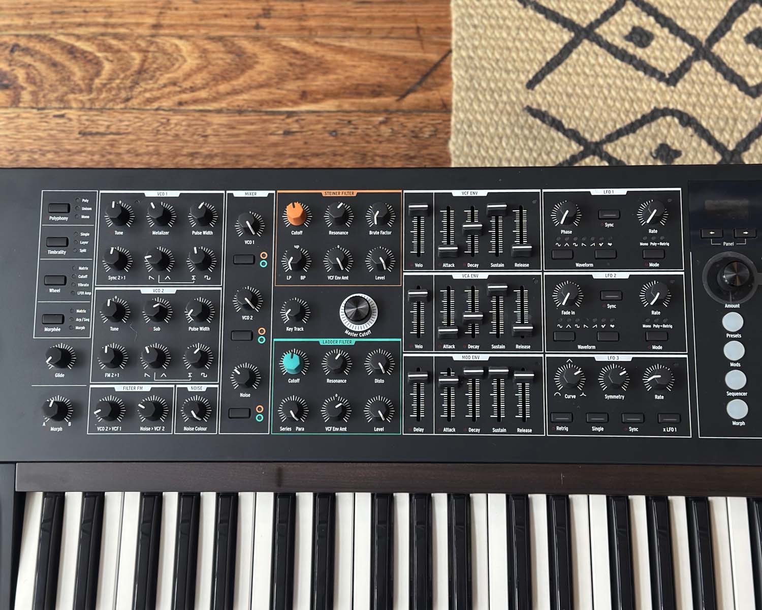 The PolyBrute is also a performer's dream, featuring a 61-key range, pitch and multifunction wheels, and a touch-sensitive strip for added expressiveness. But the real showstopper is the Morphée three-dimensional touchpad, offering a human touch to your sound with its 3-axis control.
