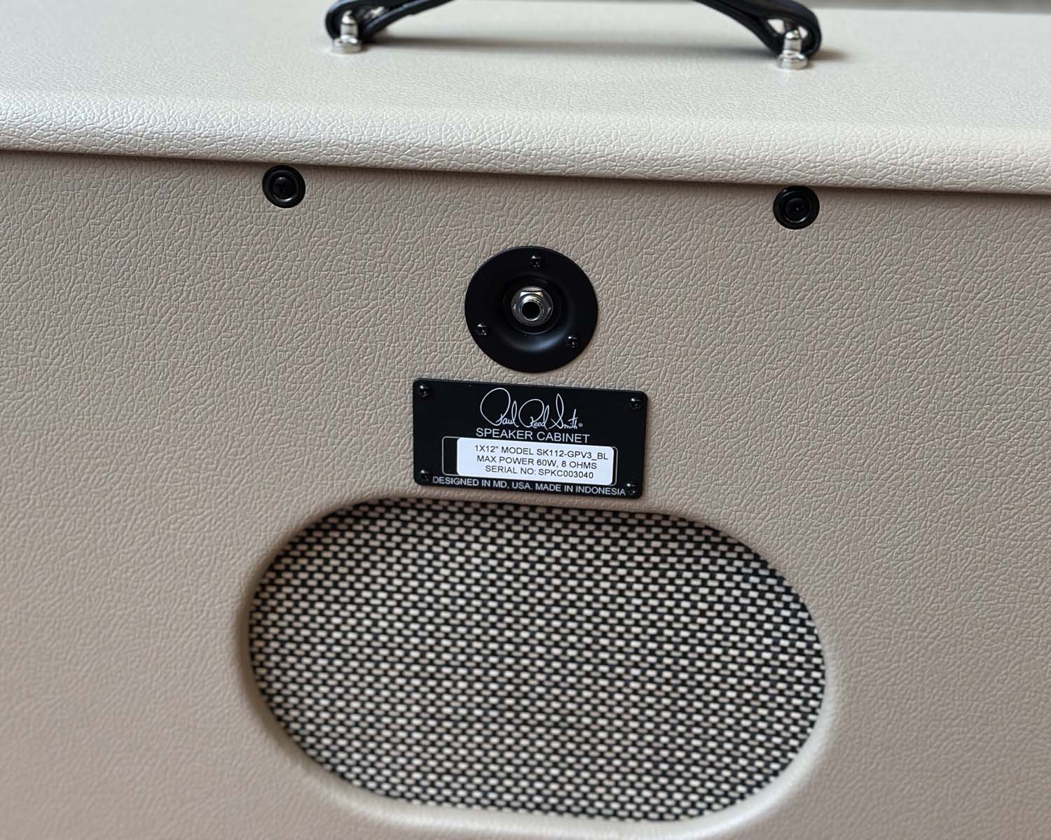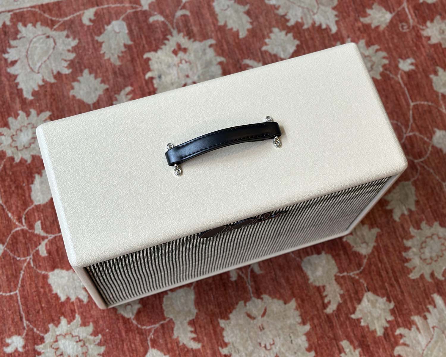 Open back 1x12 cab loaded with Celestion Vintage 30 speaker, the signature box of session guitarist David Grissom. Great for projecting warm vintage tone, clear top end and vocal mids. Handsome blonde tolex covering and salt & pepper grille cloth, with comfy leather handle. Handles 60W power at 8 Ohms impedence. Made in the USA.