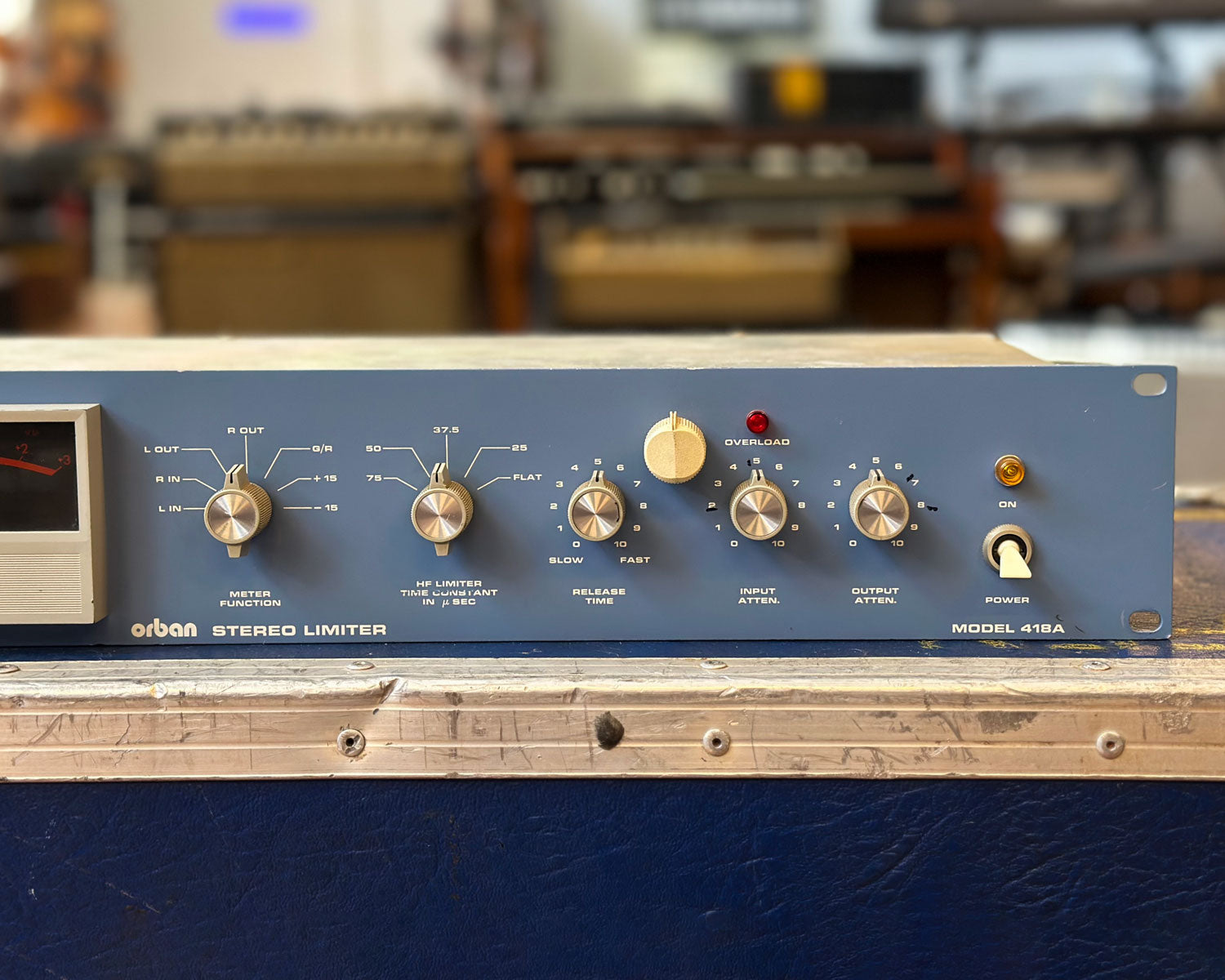 Released in the late 1970s, the Orban 418A is a stereo FET limiter celebrated for its distinct character and dynamic control. Often likened to the UREI 1176 and 1178, the 418A delivers a signature "colour and crunch," making it a go-to for engineers aiming to add personality to their mixes. Its high-frequency limiter acts as a dynamic low-pass filter, ideal for taming harsh upper frequencies—much like the "warmth" control in modern units like the Empirical Labs Fatso. Built to last, its unique sonic traits have made it a staple in both recording and broadcast settings.