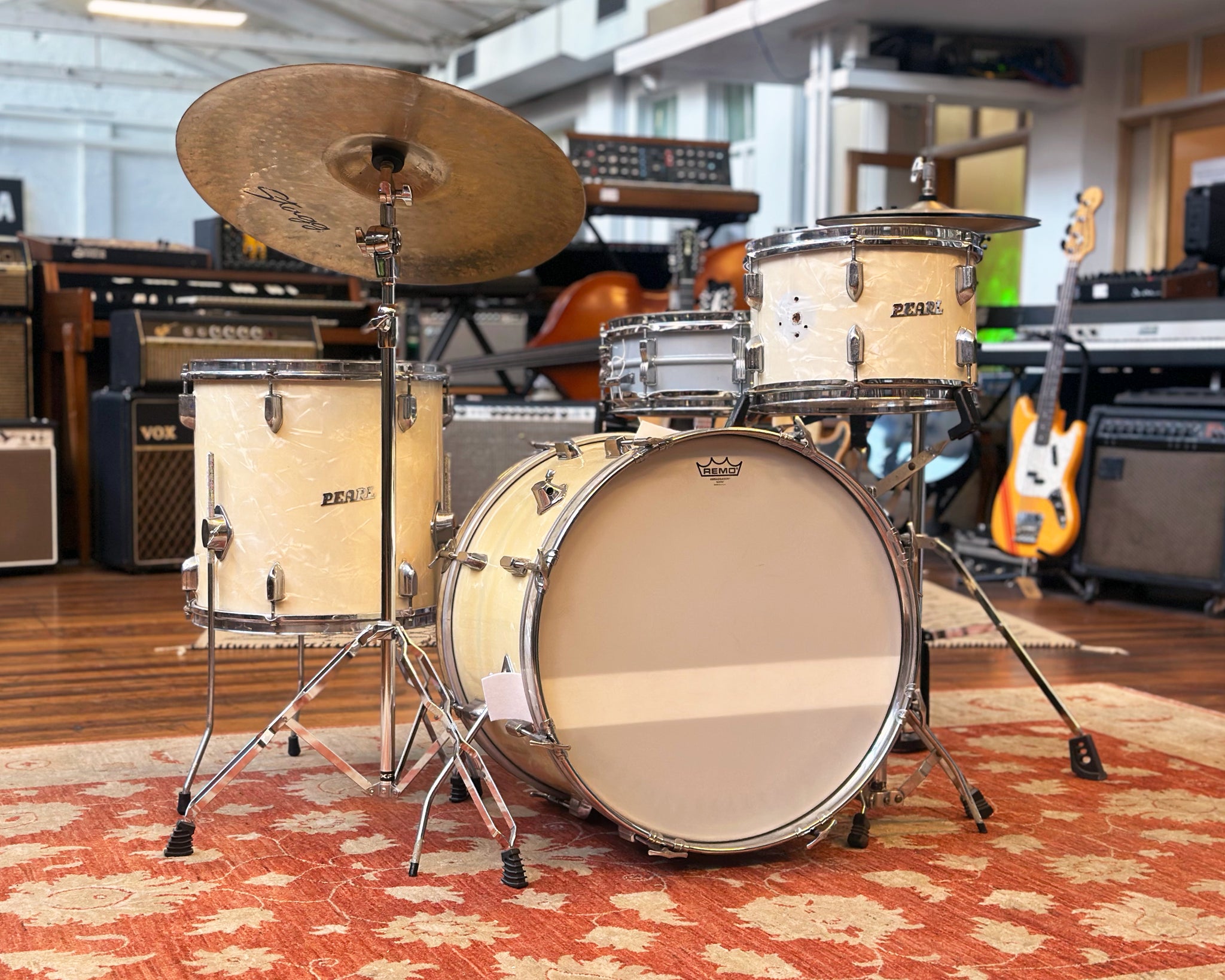 A well loved relic straight from the height of Pearl's President era in the 1960s. 20" bass drum, 14" floor tom & 2x 12" rack toms. She's seen some things in her time but everything works well. This would make for a great players kit.
