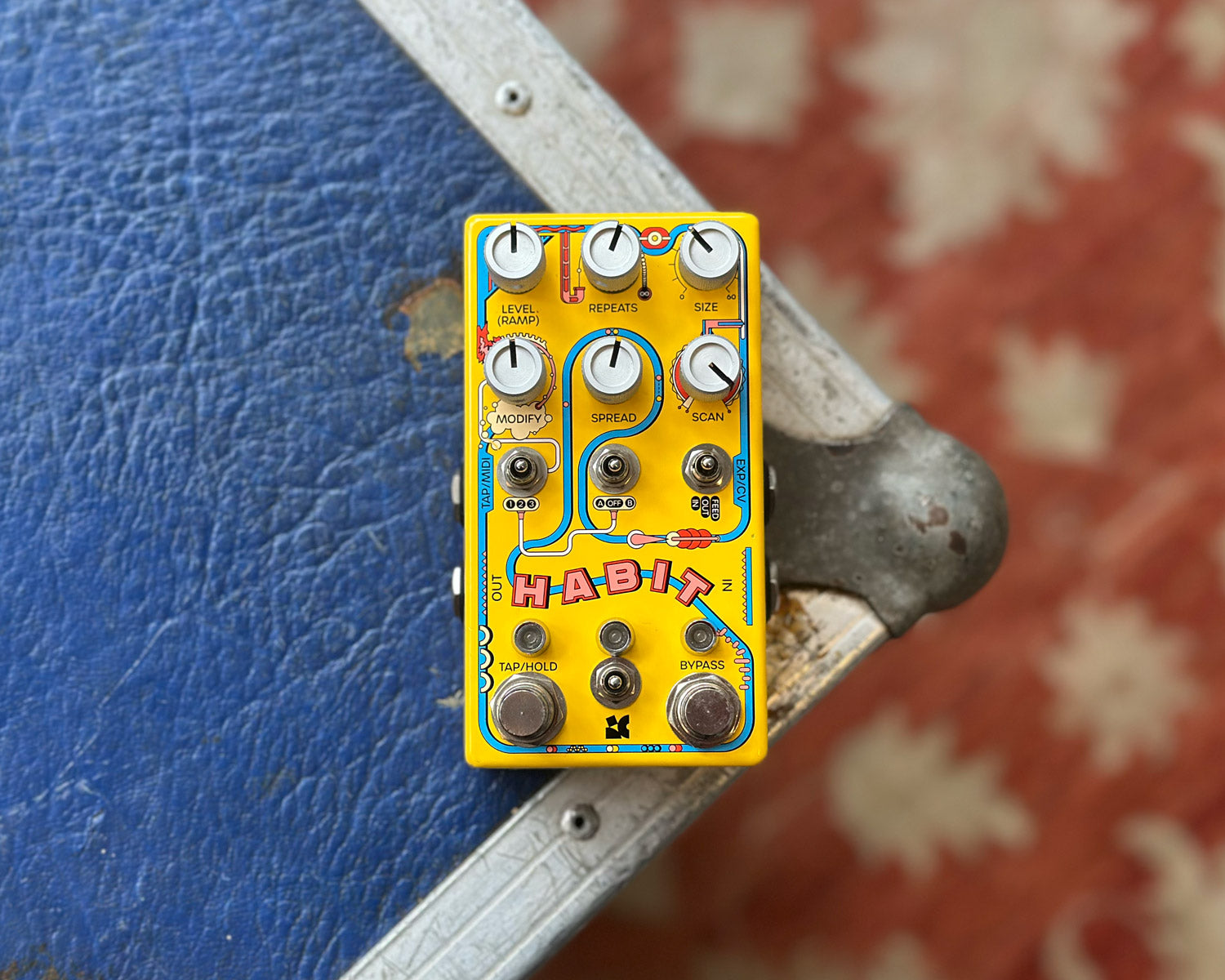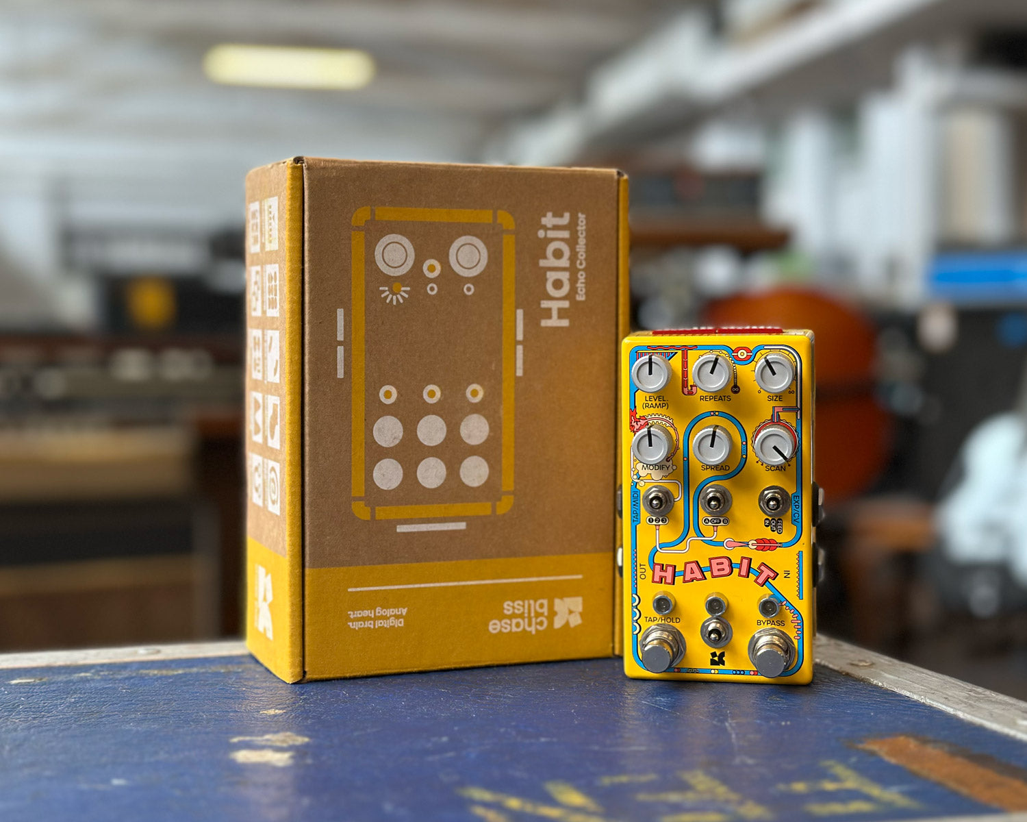 The Chase Bliss Habit is a musical sketchpad. It stores everything you play for later, enabling you to revisit and reuse sounds made prior; building compositions directly from the pedal, gathering up loops, and designing custom echo patterns.