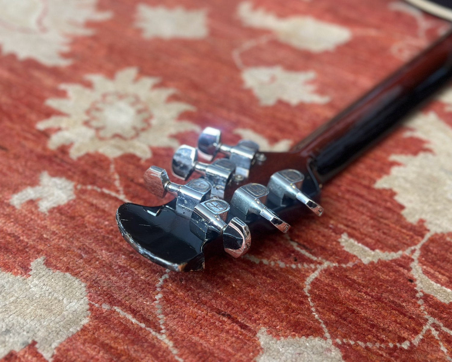 USA-made acoustic electric known for its deep bowl and rounded composite back designed to enhance projection and tonal balance. It features a bound spruce top with round soundhole and leaf-pattern rosette, composite body, and a mahogany/maple neck with a medium “C” profile. The ebony fingerboard has pearloid diamond markers, a 10" radius, and a 25 1/4" scale length. Fitted with its original active pickup and preamp, has original hardware.