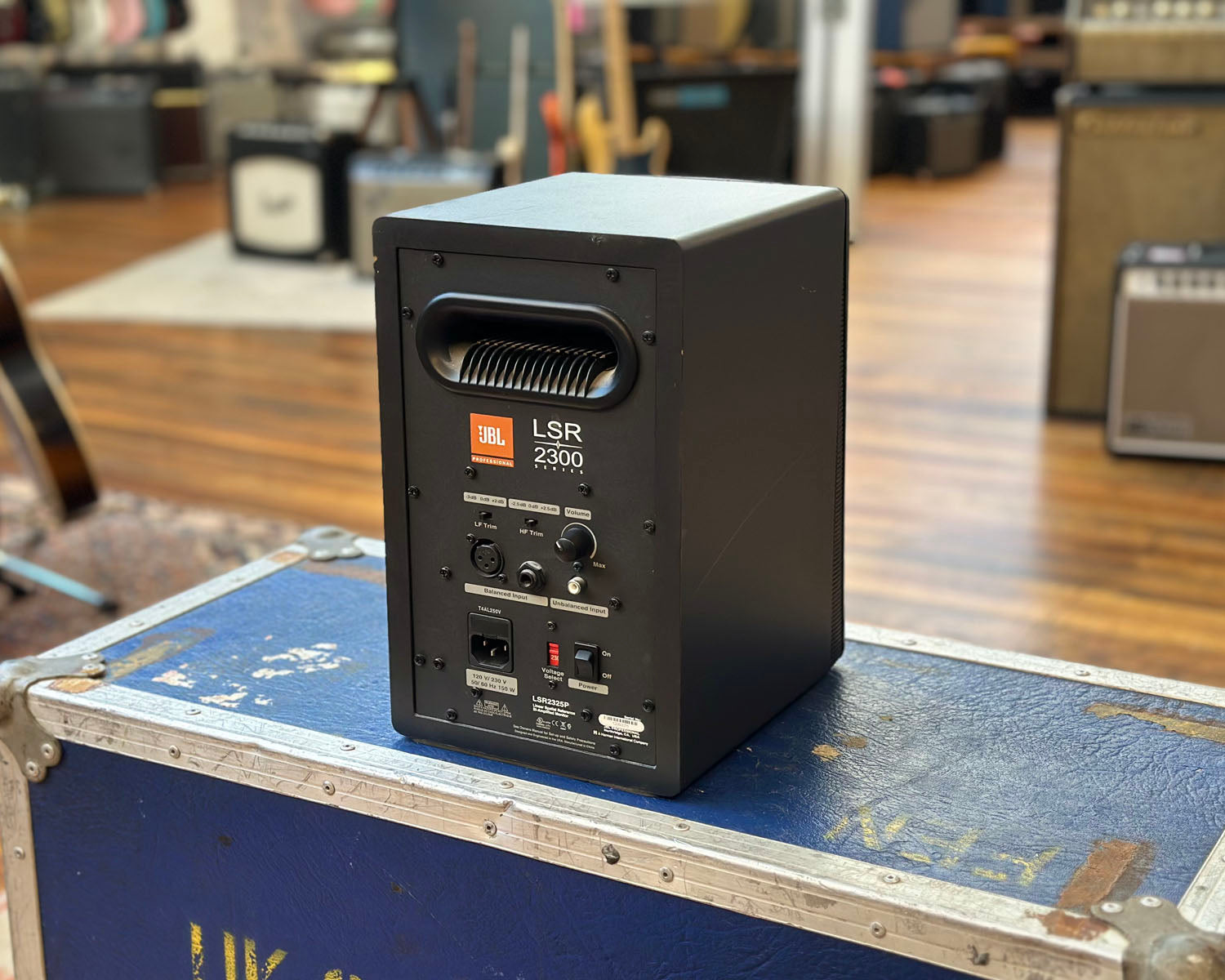 Features include Class A/B bi-amplification, magnetically shielded drivers, and soft-dome tweeters loaded into JBL’s EOS waveguide for controlled dispersion. Rear-panel HF and LF trim switches allow simple adjustment, and balanced XLR, TRS, and unbalanced RCA inputs are provided. Sonically, the LSR 2300 series is characterised by a smooth, balanced presentation with a wide sweet spot and a comfortable top end, making it well suited to long sessions in small to mid-sized project studios.