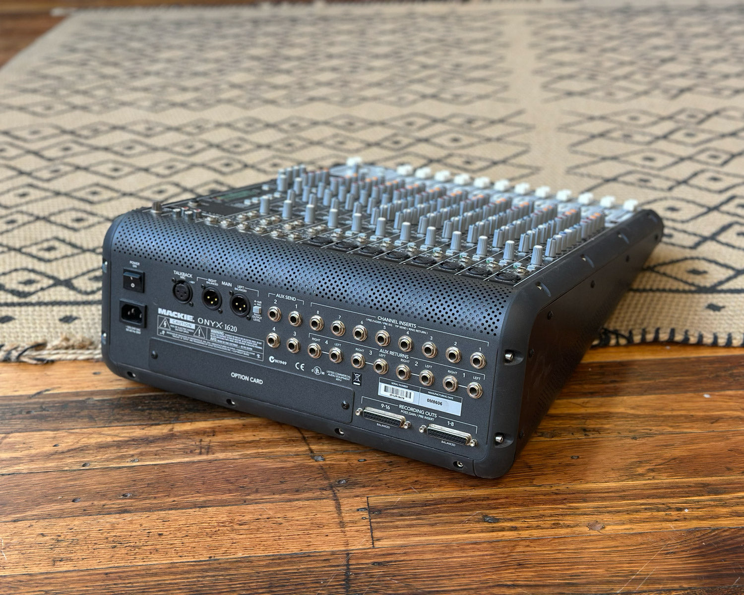 With the optional FireWire card installed, the mixer sends up to 16 direct channel outputs plus the main stereo mix straight to a computer at high resolution over a single cable, while still functioning as a full analogue console for monitoring, routing, and talkback. Solidly built with a clear, functional layout, the Onyx 1620 bridges traditional hands-on mixing and modern DAW integration without forcing users into a fully digital workflow.