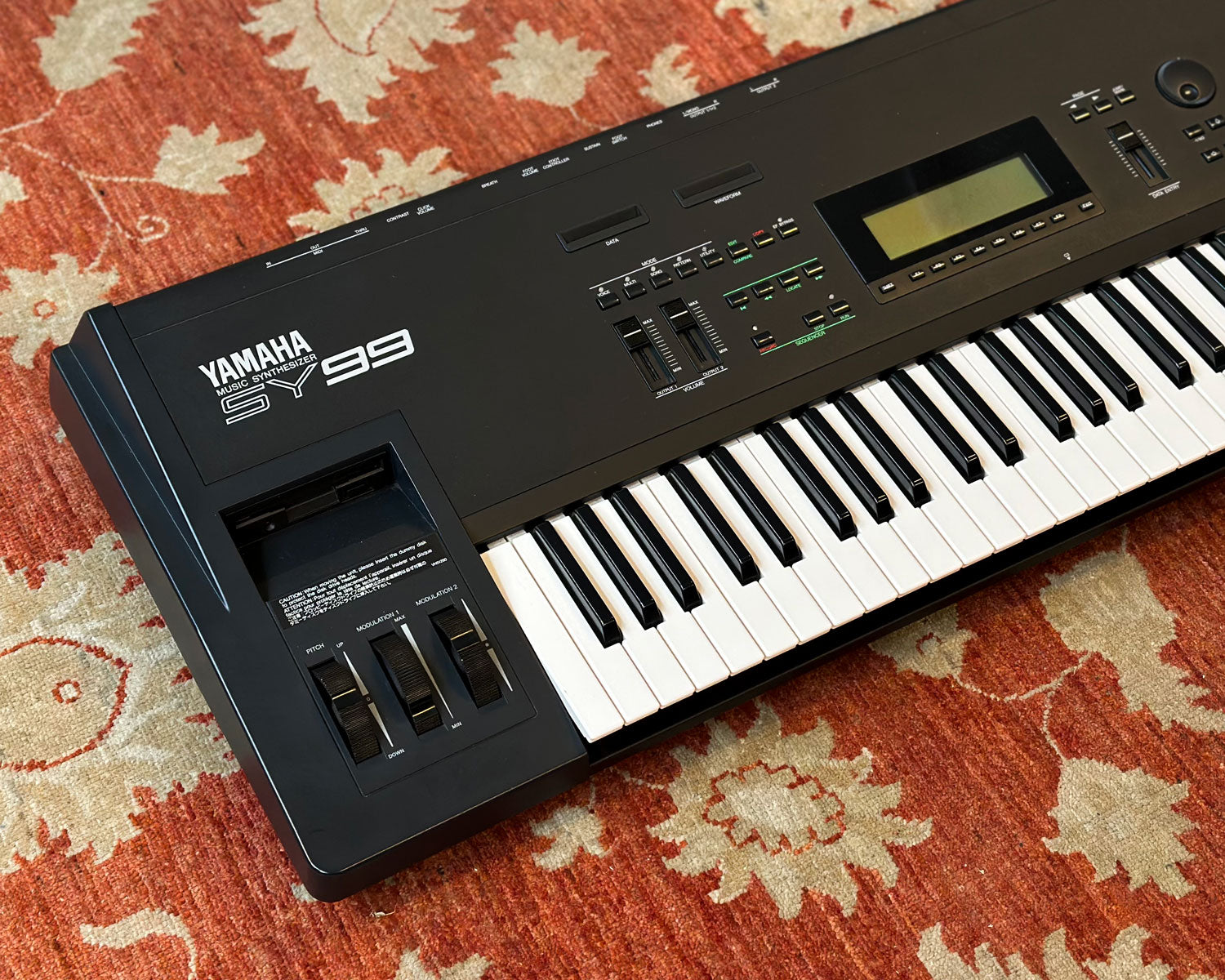 The Yamaha SY99 is essentially a supercharged sampling workstation combined with the synthesis power of a DX-7mkII. Closely related to the SY77, it expands the concept with a larger 76-note keyboard and upgraded synthesis, sample memory, and sequencing.
