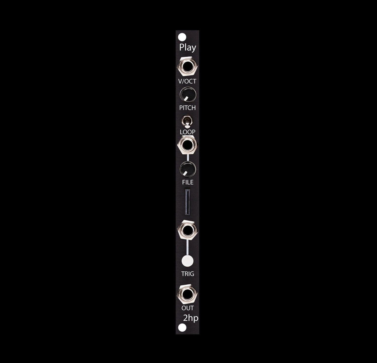 Up to 32 samples can be loaded at a time and dynamically switched between using the file knob and associated CV input. Playback modes include one-shot, looping, or gated playback; all with extremely low latency. Transform your samples by pitching them up two octaves or down three octaves, all with a pitch knob that can be free running or quantized to semitones. The pitch CV input tracks volt per octave across its entire range and allows for musical sequencing of samples. Play ships with a pre loaded SD card packed with loops, drum hits, and field recordings to get you up and running immediately.