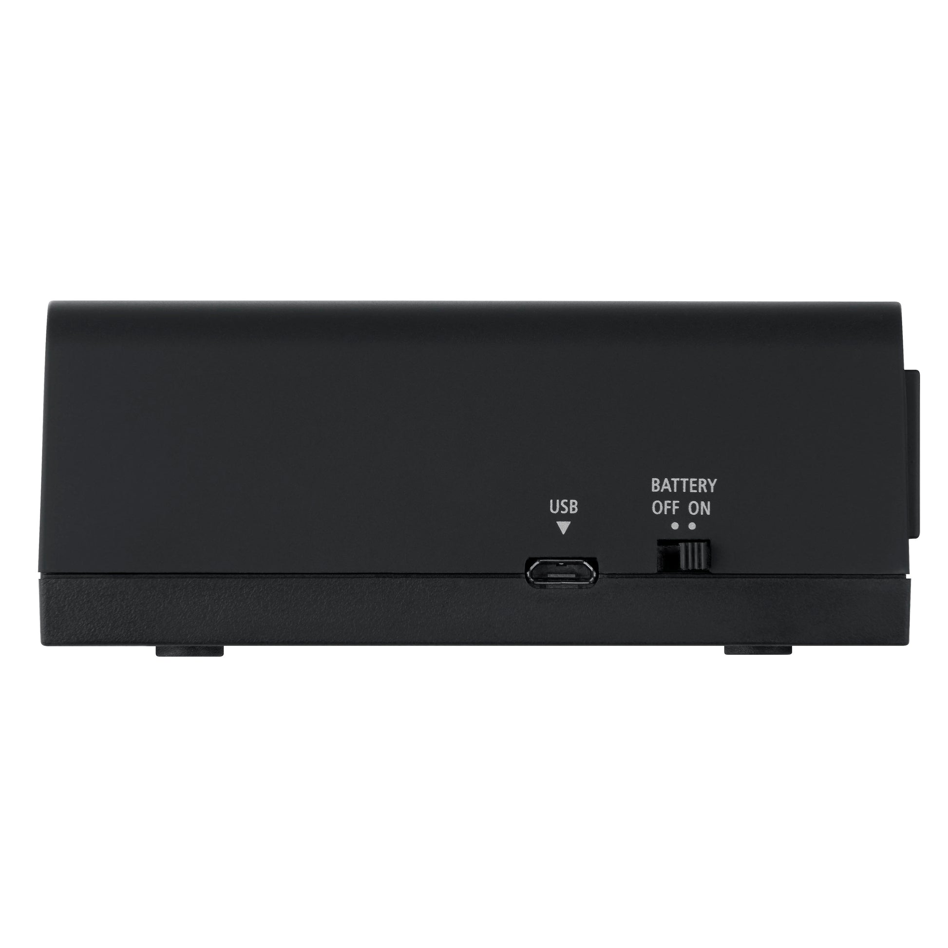 - Combo jack supports standard mics with XLR or ¼-inch plugs; 48 V phantom power available via XLR