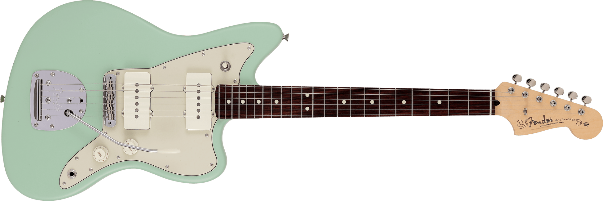 The cavity design makes it lighter and provides better playability. The newly designed Junior Collection Modified Single Coil Jazzmaster pickups are equipped with authentic Jazzmaster tones. A vintage type tuner and a vintage style floating tremolo bridge ensure tuning stability.